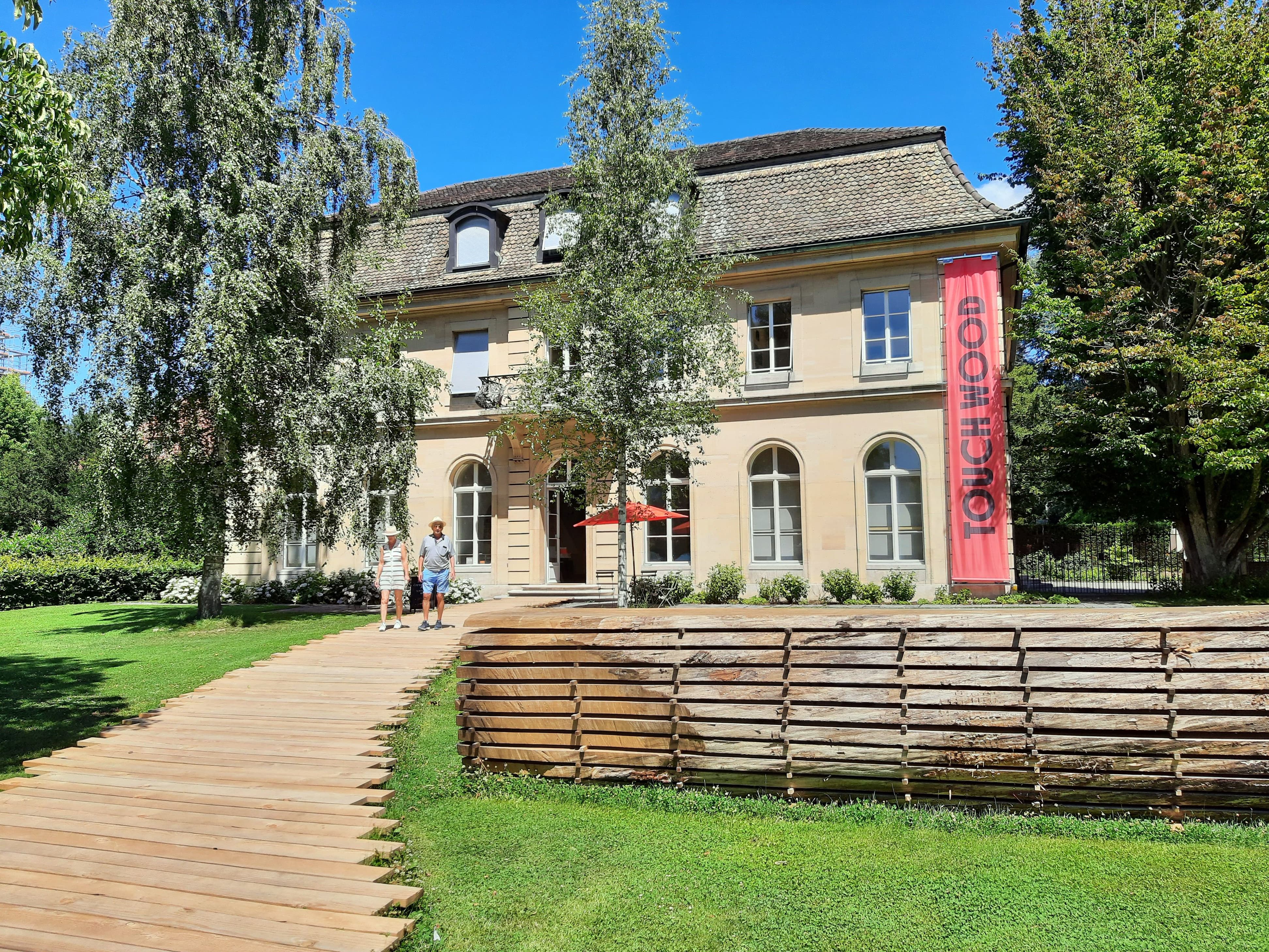 Ein unregelmässig angelegter Steg führt vom Ufer durch den Garten direkt auf den Terrasseneingang zu, markiert von den skulpturhaft gestapelten Brettern einer gewaltigen vielhundertjährigen Eiche aus Slawonien. Das ZAZ signalisiert damit einmal mehr seinen Anspruch, ein offener und inklusiver Ausstellungsraum zu sein, der das Thema Architektur breit und immer mit Blick auf seinen Platz in der Gesellschaft diskutieren will.