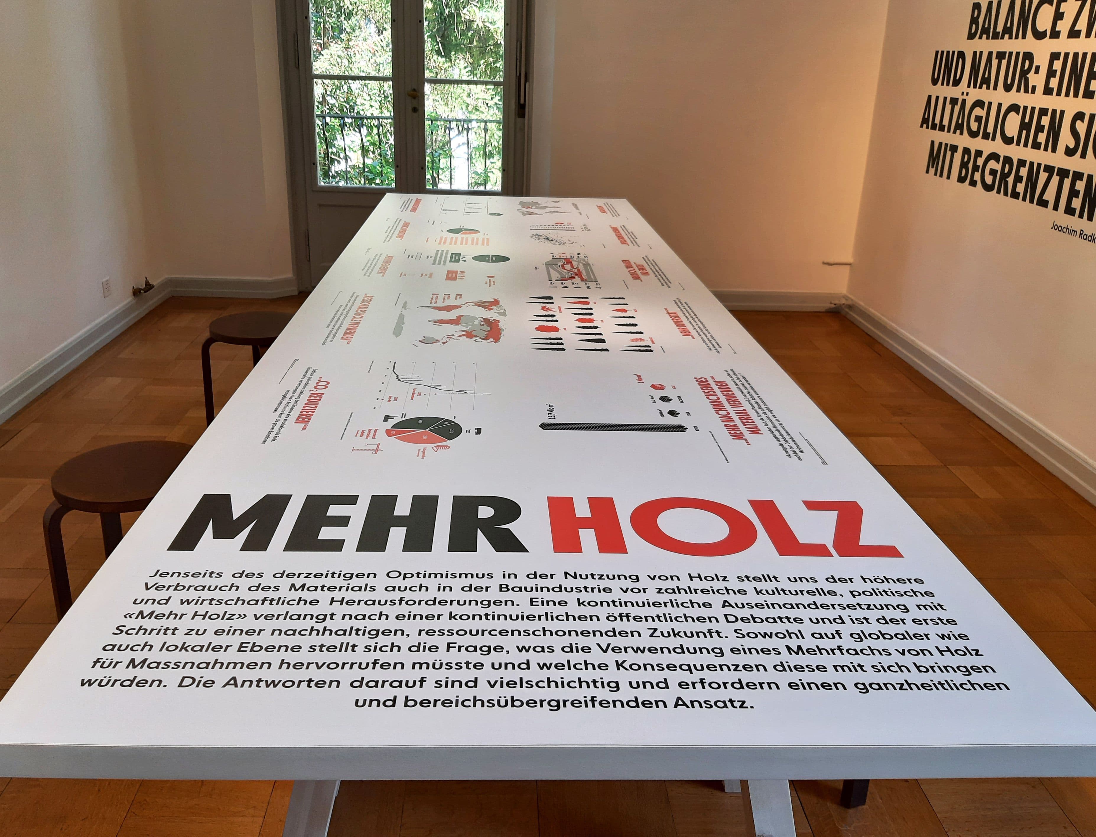 Was in der Ausstellung abschliessend an einem grossen «Verhandlungstisch» ausgebreitet wird, enthält mit Postulaten wie «Mehr Diversität» (in Bezug auf die Verwendung von Holzarten und -qualitäten), «Wissen teilen» oder «Regionales Holz verwenden» zugleich einen ganzen Katalog von Themen, die sich in einem interdisziplinären Rahmen von Architekturforschung und Kulturwissenschaft produktiv weiterdenken liessen. Denn – das zeigt diese Ausstellung sehr eindrucksvoll – eine nachhaltig und ressourcenschonend gestaltete Zukunft braucht nicht nur die öffentliche Debatte, sondern auch mehr Wissen und Reflexion über kulturell situierte Werte und Vorstellungen sowohl vom geglückten Zusammenleben als auch vom richtigen Umgang mit Ressourcen.