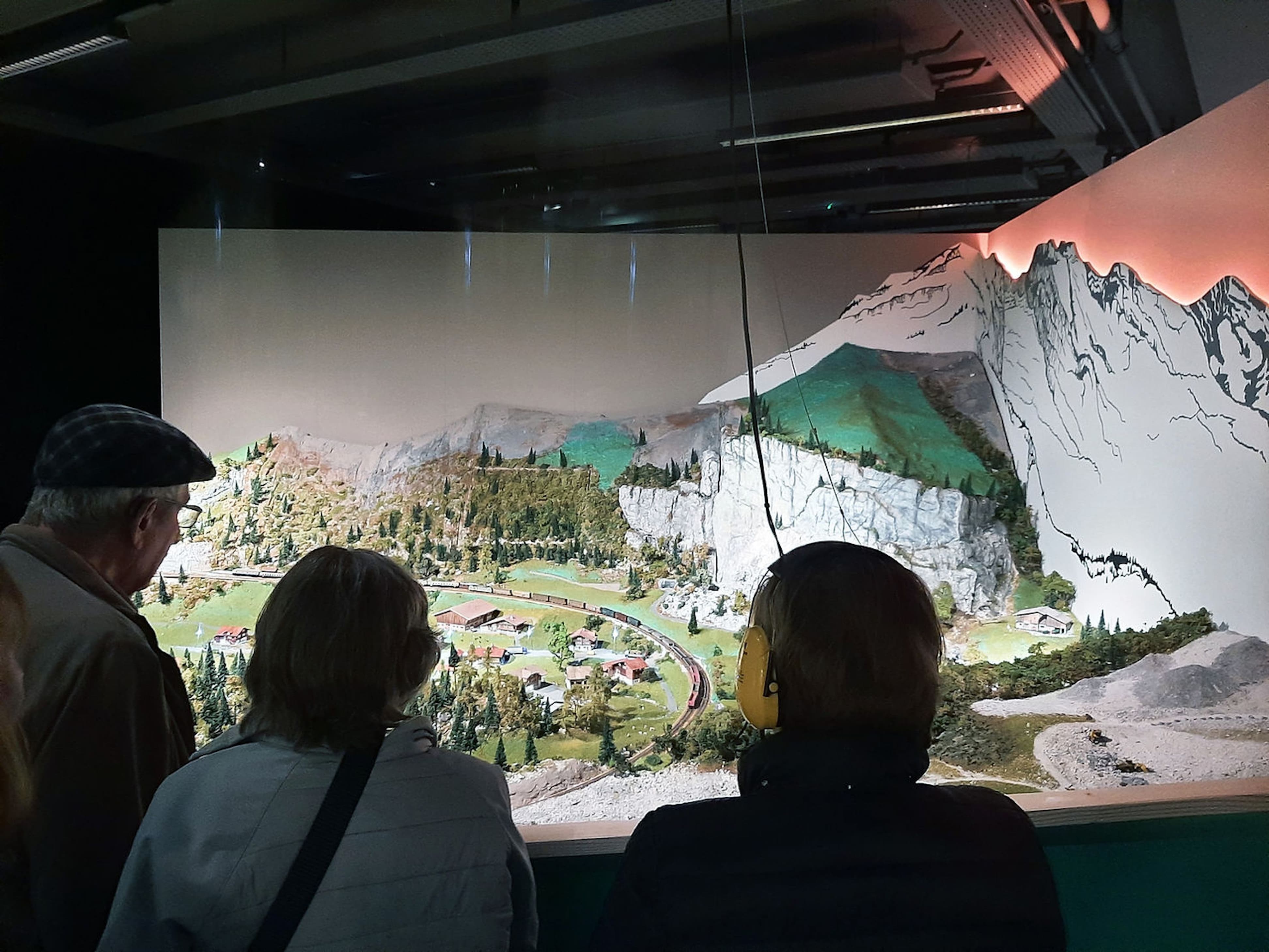 Wäre da nicht das nach Art des Hauses gestaltete Entrée mit signalrotem Ausstellungstitel, Sprengsymbolen und der mahnend platzierten Frage «Was geht mich das an?», könnte man sich in einer Idylle wähnen. Die Ausstellung des Alpinen Museums der Schweiz (ALPS) beginnt mit einer seltsam harmlos anmutenden Modelleisenbahnlandschaft, und man muss schon genau hinsehen, um das Verstörende an dem Berner Oberländer Dorf zu erkennen, das da mit seinen Holzhäusern und grünen Wiesen harmonisch umfangen von einer Kehrschleife der Lötschbergbahn zur Besichtigung einlädt. Doch früher oder später gerät der bedrohlich wirkende Bergsturz in den Blick. Und sind nicht in einer Ecke bereits riesenhafte Bagger aufgefahren? Wenn man dann noch nach einem der Kopfhörer greift, weiss man: So ähnlich würde wohl auch ein Film von David Lynch über Mitholz beginnen. Mit einem Hörstück des Westschweizer Autors Antoine Jaccoud begibt man sich auf die Reise durch einen durchchoreografierten Parcours, der einen für die nächsten eineinhalb Stunden nicht mehr loslässt: «Willkommen bei uns, die von hier weggehen».