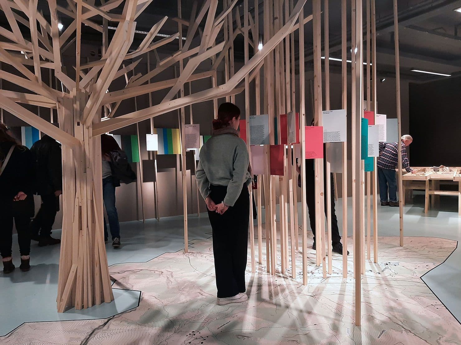 Ob man sich vorstellen kann, sein Zuhause zu verlassen, wird man dann auch im Schatten der sinnbildlich schwebenden Wurzeln eines in Mitholz umgewehten Baumes (aus dessen Holz wie aus so vielen Objekten im Ort zunächst noch Munition entfernt werden musste) gefragt. Doch zuvor passiert man eine Art Informationsstollen. Hier geht es um das «Risiko», das von den tausenden Tonnen explosiver Rückstände ausgeht. Sie sind neben und nach der Nutzung der gigantischen unterirdischen Anlage als Armeelager, Militärspital und -apotheke im Berg verblieben und sind nicht nur potentiell explosiv, sondern auch hochgradig umweltschädigend. Beklemmende Filmsequenzen und Hörstationen begleiten einen wiederum an eine spielerische Station, an der sich fast schon im Jargon des VBS (Eidgenössisches Departement für Verteidigung, Bevölkerungsschutz und Sport), das 2020 die Absiedlung verordnet hat, an der «Variantenevaluation» teilhaben lässt.