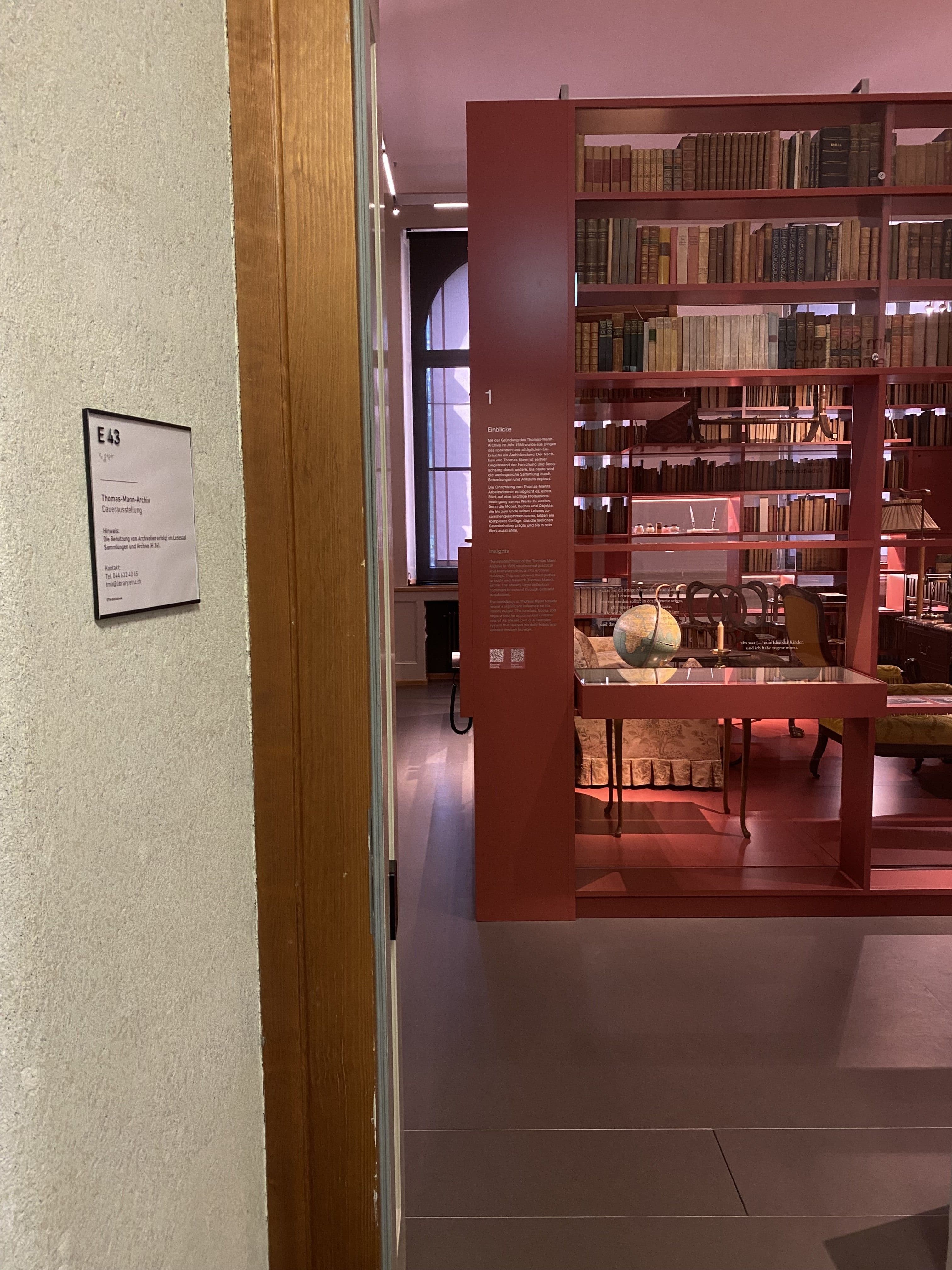 Das Thomas-Mann-Archiv der ETH-Bibliothek verwaltet und pflegt seit 1956 den literarischen Nachlass des Schriftstellers. Ein wichtiger Bestandteil der Arbeit ist die Vermittlung des Nachlasses an die Öffentlichkeit. Vor einem Jahr wurde an der ETH Zürich die neue Dauerausstellung «Im Schreiben eingerichtet. Thomas Mann und sein Arbeitszimmer» eröffnet. Sie präsentiert das Leben und die Arbeit des Autors in einem einzelnen Ausstellungsraum. Es gelingt ein kompakter Einblick mit spannenden kurativen Ansätzen.