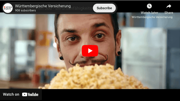 Hier kann zunächst festgestellt werden, dass das Versicherungswesen die Ungewissheit der Zukunft antizipiert und Vorsorgeoptionen bereitstellt. Wir wissen nicht, was kommen wird, aber Leben bedarf Planung und vor allem des Eindrucks, genauer: der Erwartung, künftige Entwicklungen meistern zu können. Versicherungsabschlüsse entsprechen diesem Bedürfnis und kommen der hohen gesellschaftlichen Nachfrage nach Absicherungslösungen nach. Gleichzeitig zielen ihre Verkaufsansprachen aber auch auf die Förderung genau dieses Bedürfnisses ab. Am Beispiel des nachfolgenden Werbespots der Württembergischen Versicherung kann dieser Aspekt verdeutlicht werden. In dem Video mit dem Titel «Mein Millionenjob» werden prognostizierte Lebenseinkünfte einzelner Personen mit dem Risiko einer Berufsunfähigkeit thematisch verknüpft. Der Spot lässt sich Zeit; sorgfältig werden die verblüffend hohen Lebensverdienste akzentuiert, die dann am Schluss zur Dramatik des Risikofalls beitragen.[v]