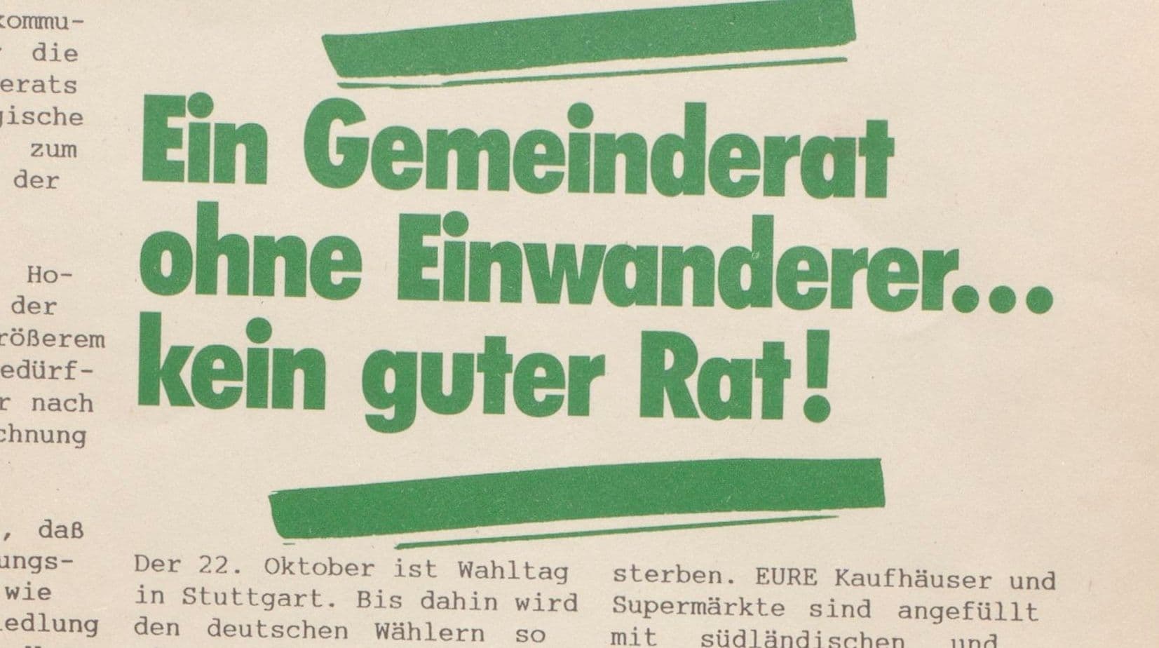 In den 1980ern trat in Deutschland eine breite gesellschaftliche Koalition für die Einführung des kommunalen Wahlrechts für Menschen ohne deutschen Pass ein. Das war von enormer politischer Relevanz: In Einwanderungsstädten wie Stuttgart war bis zu jede:r fünfte Einwohner:in aufgrund ihrer Staatsangehörigkeit von der Wahl der Stadtregierung ausgeschlossen.[i] Neben politischen Parteien (Die Grünen, FDP und SPD), griffen auch Gewerkschaften, Kirchen und zivilgesellschaftliche Akteure die Forderung nach politischer Gleichstellung auf, die Migrant:innenorganisationen schon Jahre zuvor gestellt hatten. Das kommunale Wahlrecht galt dabei als rechtlich leichter durchsetzbar als das allgemeine Wahlrecht, wobei diese Strategie aber auch als falscher Kompromiss kritisiert wurde.[ii]