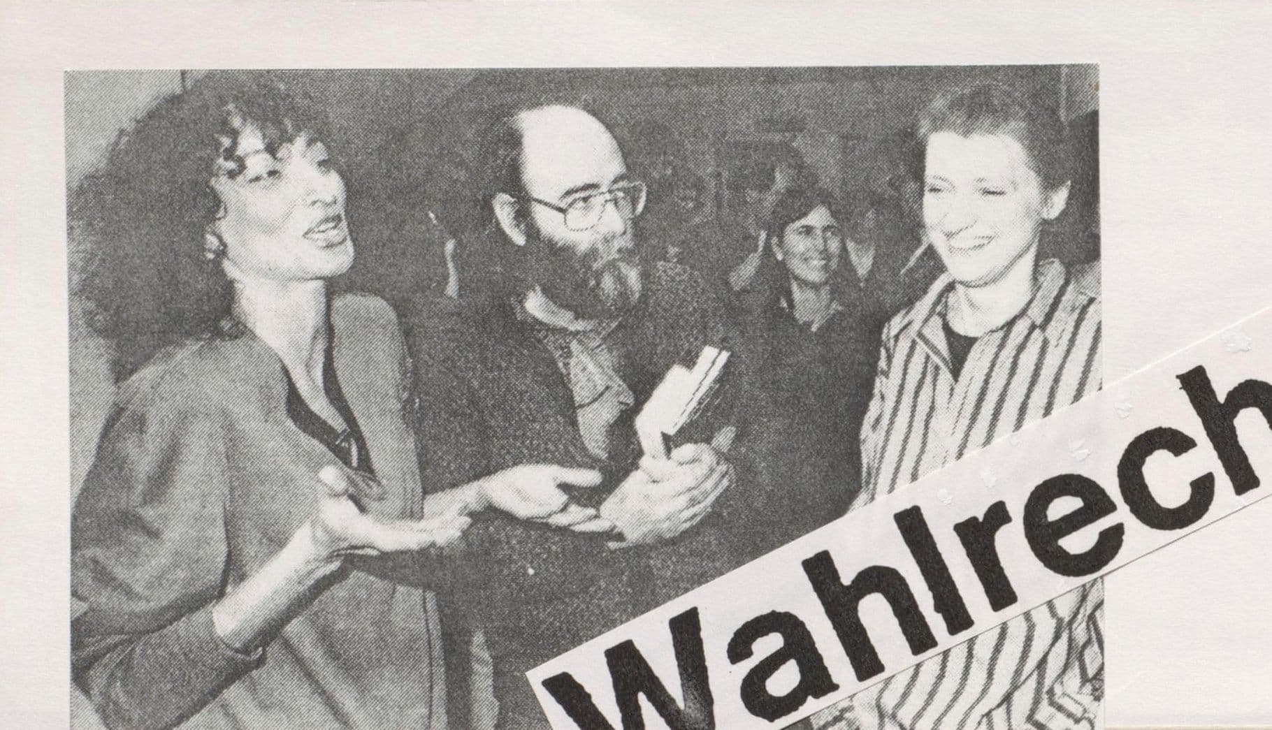 «Im Ländle ist nicht einmal das Kommunalwahlrecht in Sicht», stellte die Initiative im Jahr 1989 fest. Sie forderte «gleiche Bürgerrechte für alle BürgerInnen dieser Stadt und dieser Republik, die vollen politischen Rechte für alle EinwanderInnen»[vi]. Durch hohe Präsenz im städtischen Alltag und basisdemokratische Arbeitsstrukturen gewann die Wählerinitiative schnell den Charakter einer sozialen Bewegung. Den Neuen Sozialen Bewegungen zuzuordnen, war sie eng mit migrantischen Selbstorganisationen, Stadtteilgruppen, gewerkschaftlichen Akteur:innen und Kulturinstitutionen vernetzt. Verschiedene soziale Gruppen kamen unter diesem Dach zusammen, neben bewegungserfahrenen Intellektuellen und Künstler:innen, fanden auch jüngere Aktivist:innen sowie bisher unorganisierte (migrantische) Arbeiter:innen zur Initiative.