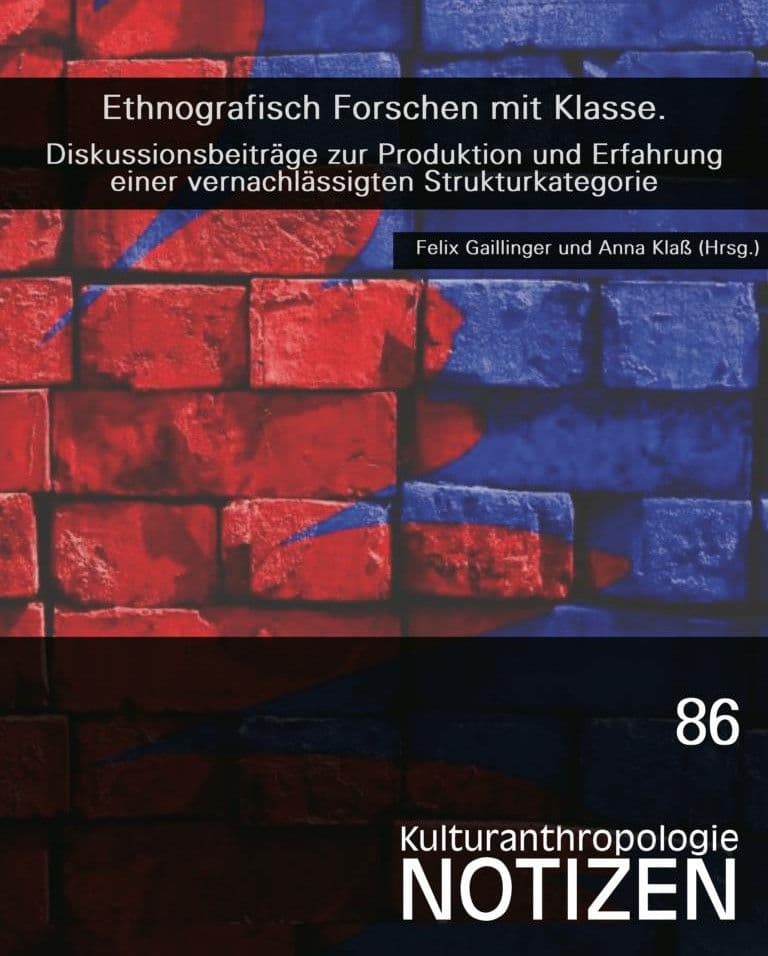 Felix Gaillinger, wissenschaftlicher Mitarbeiter am Institut für Europäische Ethnologie der Universität Wien, und Anna Klaß, ehemals am Institut für Empirische Kulturwissenschaft und Europäische Ethnologie der LMU München und heute als politische Bildnerin und Pädagogin in einem Münchner Bildungskollektiv tätig, sind die Herausgeber:innen des 86. Bands der Reihe Kulturanthropologie Notizen. Klaß und Gaillinger widmen sich der Frage, welche Bedeutung und Rolle die Strukturkategorie und Erfahrungsgrösse Klasse in der ethnografischen Forschungspraxis einnimmt. Sie argumentieren, dass ein Fokus auf Klasse eine kritische Kulturwissenschaft, die sich mit sozialen Ungleichheiten auseinandersetzt, entscheidend verdichten kann.