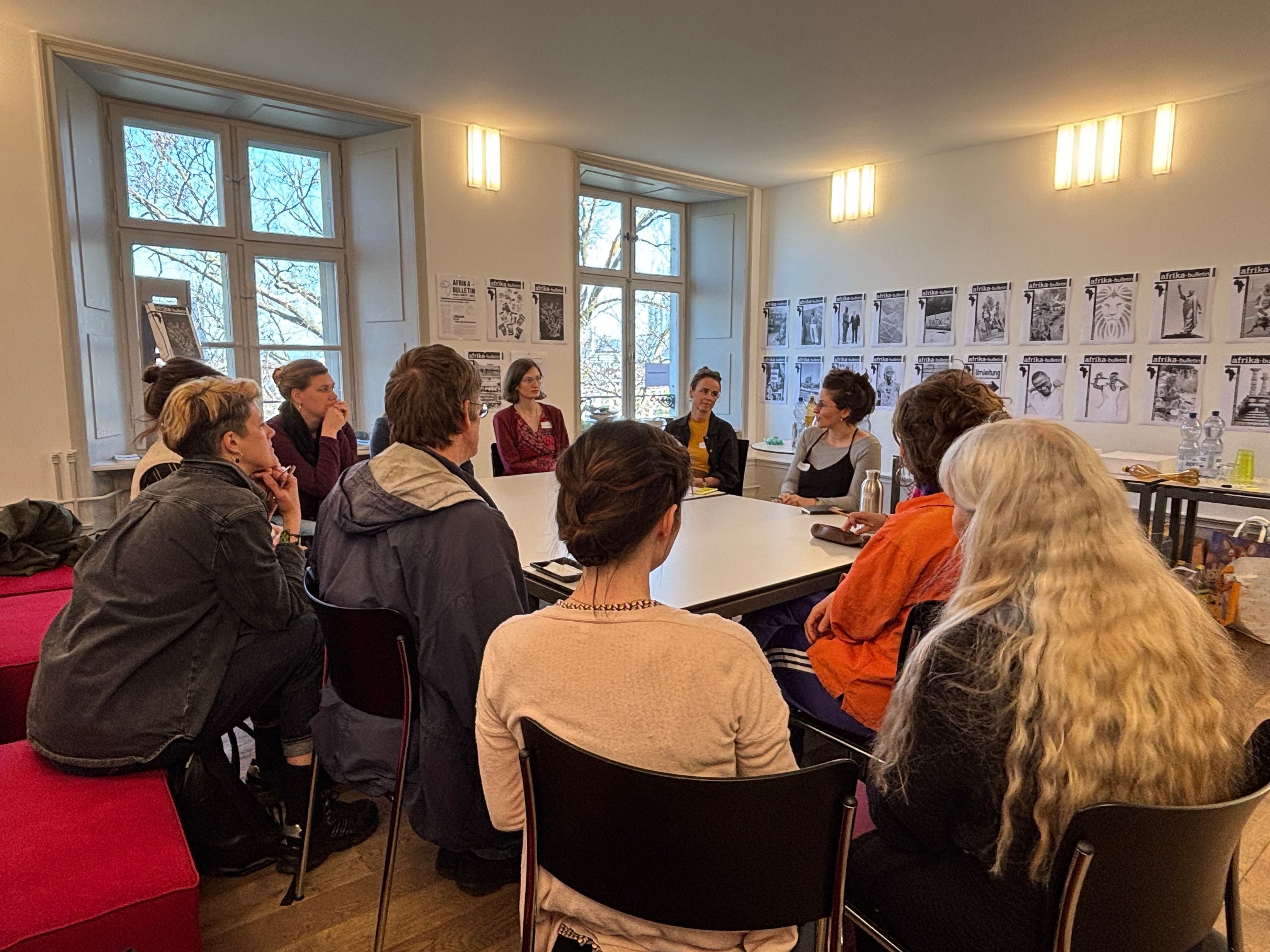 Bei den Tischgesprächen erkundige ich mich zudem etwas genauer über die Tätigkeiten im Archiv. Ich erfahre, dass diese Arbeit, um einiges vielfältiger ist, als ich zu Beginn dachte. Kellerräume und zerfledderte Bücher gehören ab und an auch zum Arbeitsalltag, allerdings kommen täglich neue, aktuelle Materialien ins Archiv. Interessierte Menschen fragen im Archiv nach bestimmten Sachbeständen, die sie gerne anschauen würden. Das Gosteli-Archiv betreibt zudem viel Öffentlichkeitsarbeit, zum Beispiel mit Führungen. Administrative Tätigkeiten bilden zudem einen zentralen Bestandteil des Arbeitsalltags einer Archivleiter:in, oft müssen viele Aufgaben auf einmal erledigt werden.