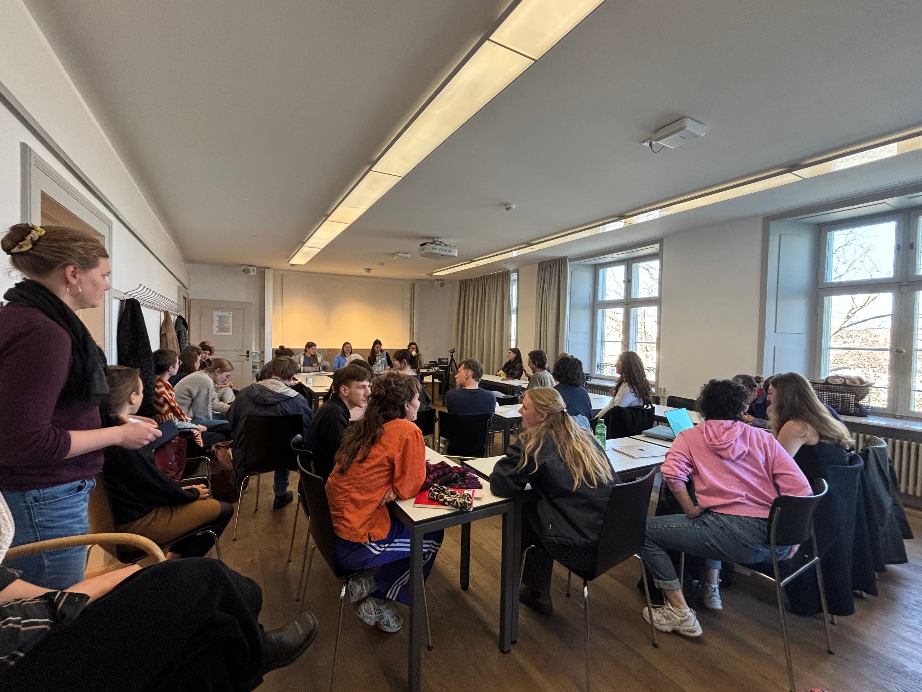 Als ich in Basel beim Unigebäude ankomme, in dem die Tagung stattfindet, scheint die Sonne, und ich bin fast ein bisschen überwältig von der Schönheit des Unistandorts der empirischen Kulturwissenschaften. Als ich etwas verspätet in das Gebäude eintrete, werde ich von einer sehr freundlichen jungen Person empfangen. Sie weist mir den Weg zum richtigen Zimmer, und ich schleiche mich ganz hinten in den Raum. Mir fällt sogleich auf, dass alle aus Porzellantassen trinken: wie cool und nachhaltig! Ausserdem nehme ich im Raum viel mehr weiblich gelesene als männlich gelesene Menschen wahr. Keine Seltenheit im Studiengang der Populären Kulturen, bei den Dozent:innen wird es dann wieder ausgeglichener.