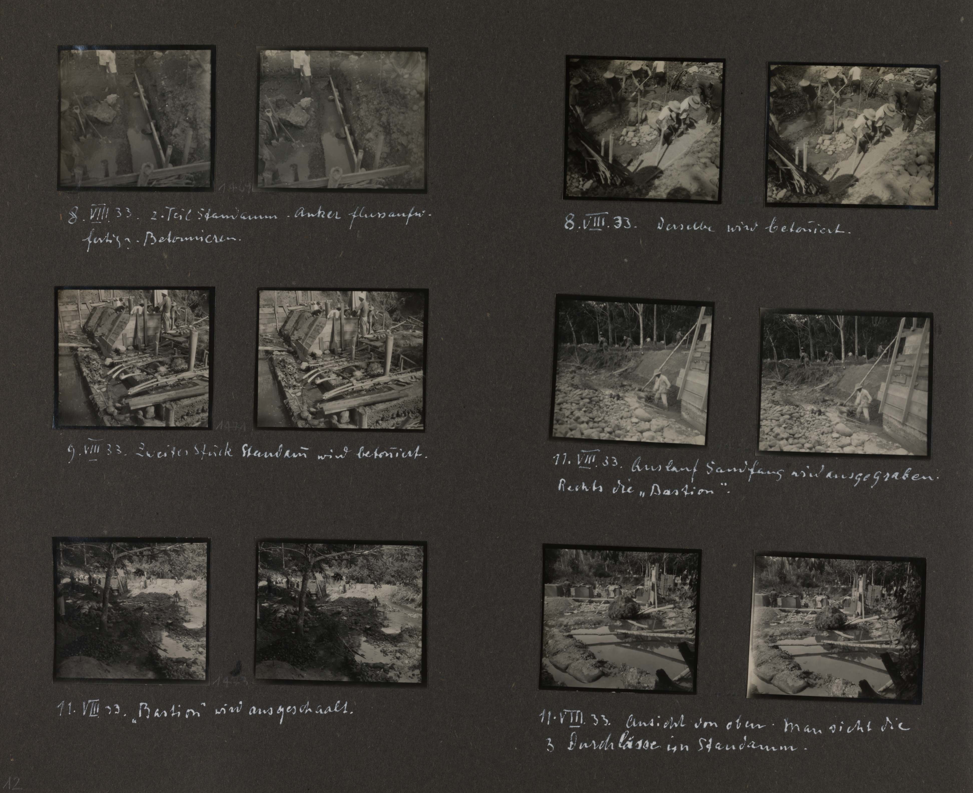12.X.33. Innenmauer Sandfang wird betonniert.