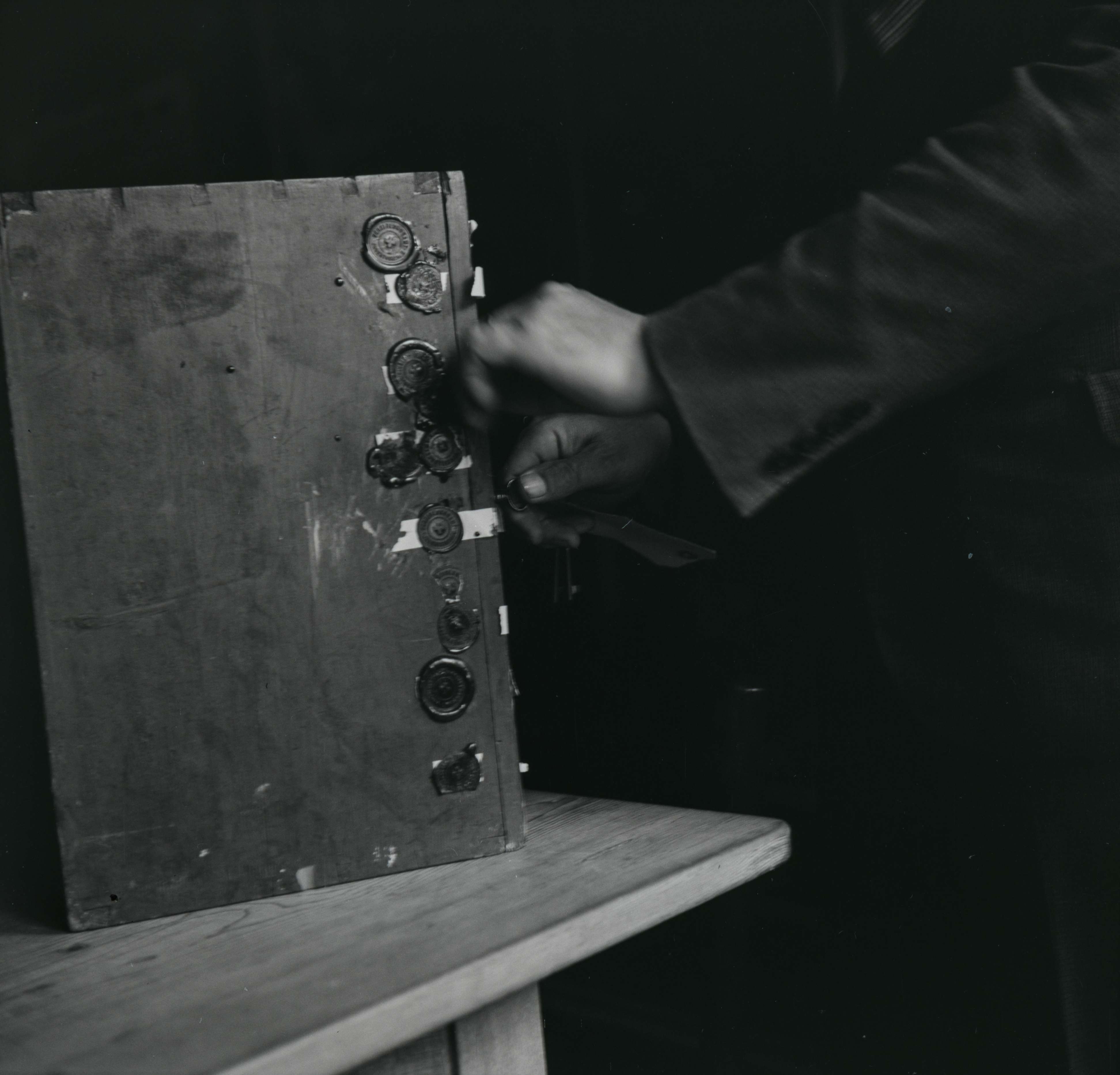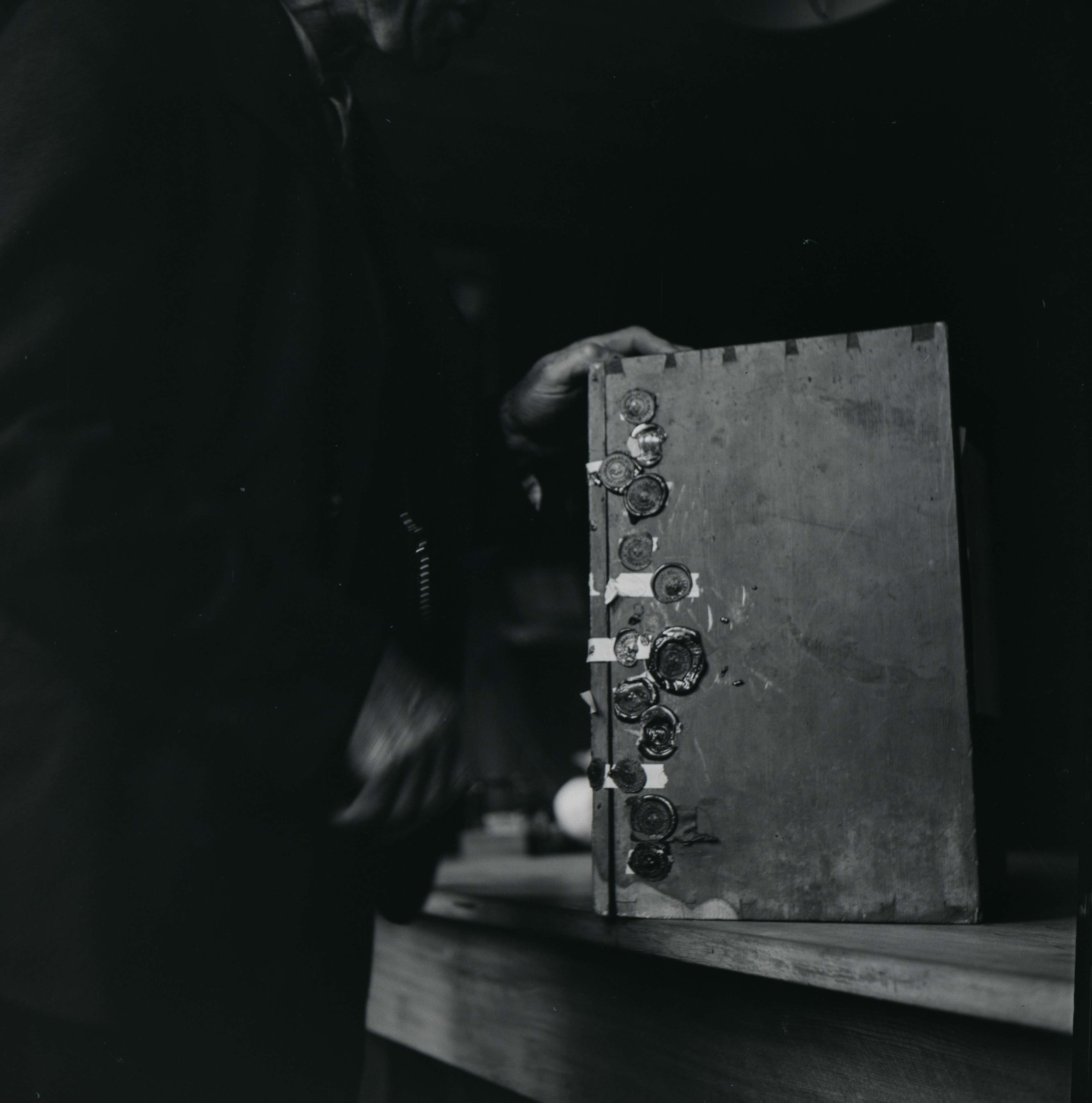[Mann öffnet die Wahlurne]