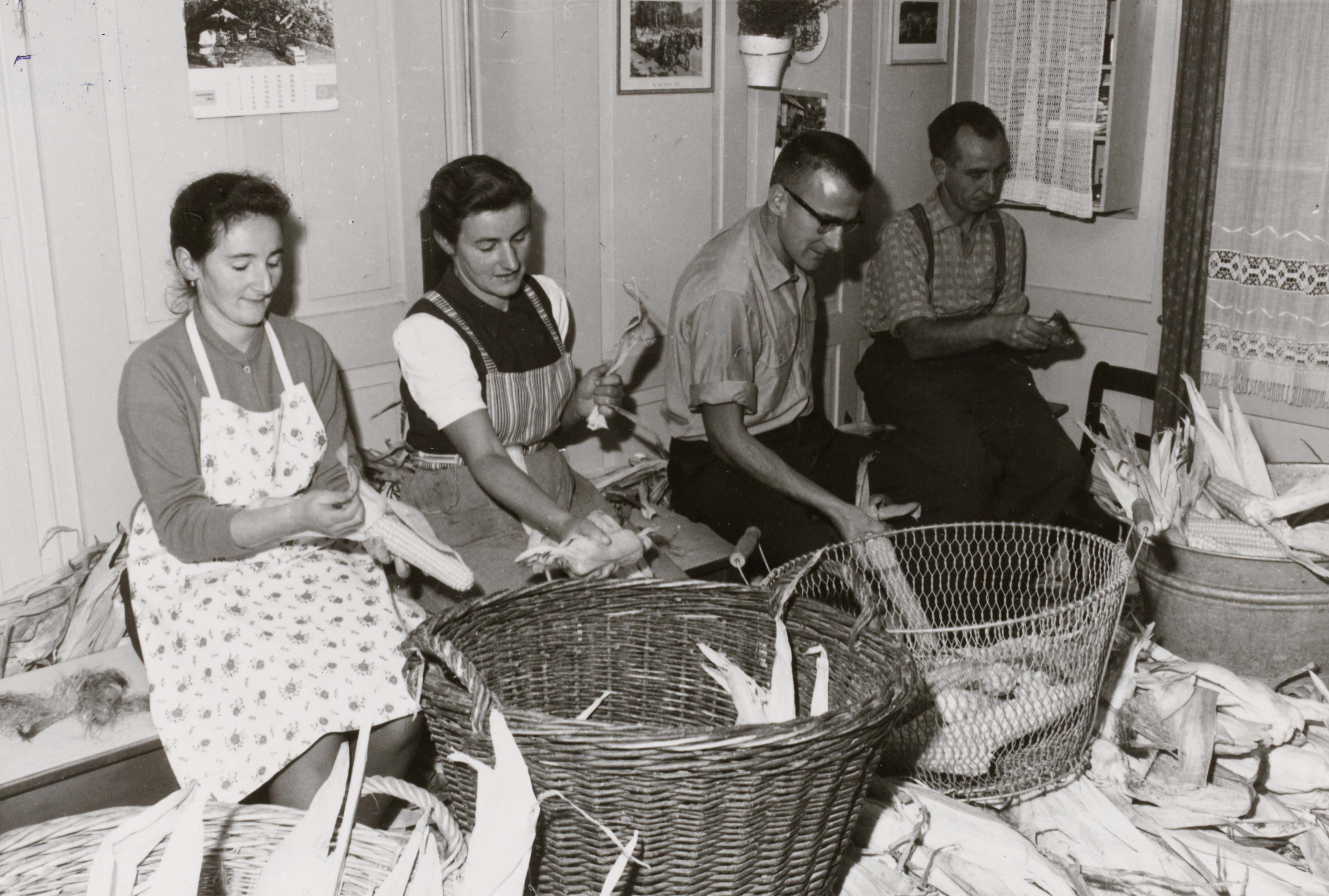 "Uusschellete" in Buchs (Abendliche Zusammenkunft zum Enthülsen (Schälen) der Maiskolben)