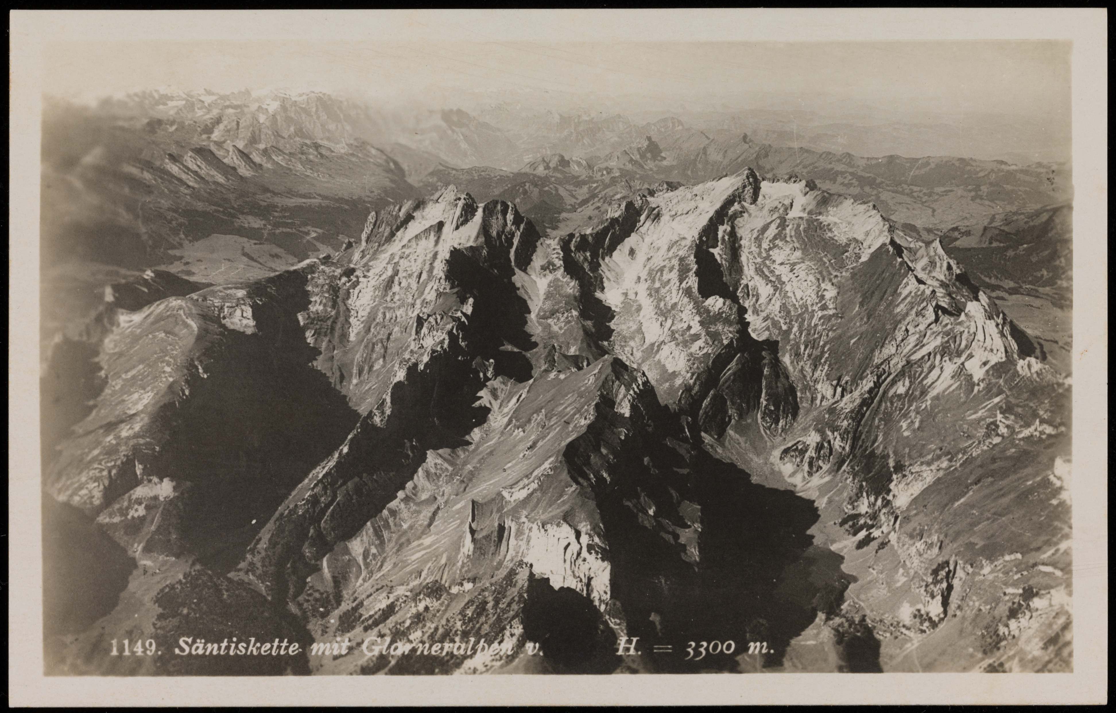 1149. Säntiskette mit Glarneralpen v. H. = 3300 m.