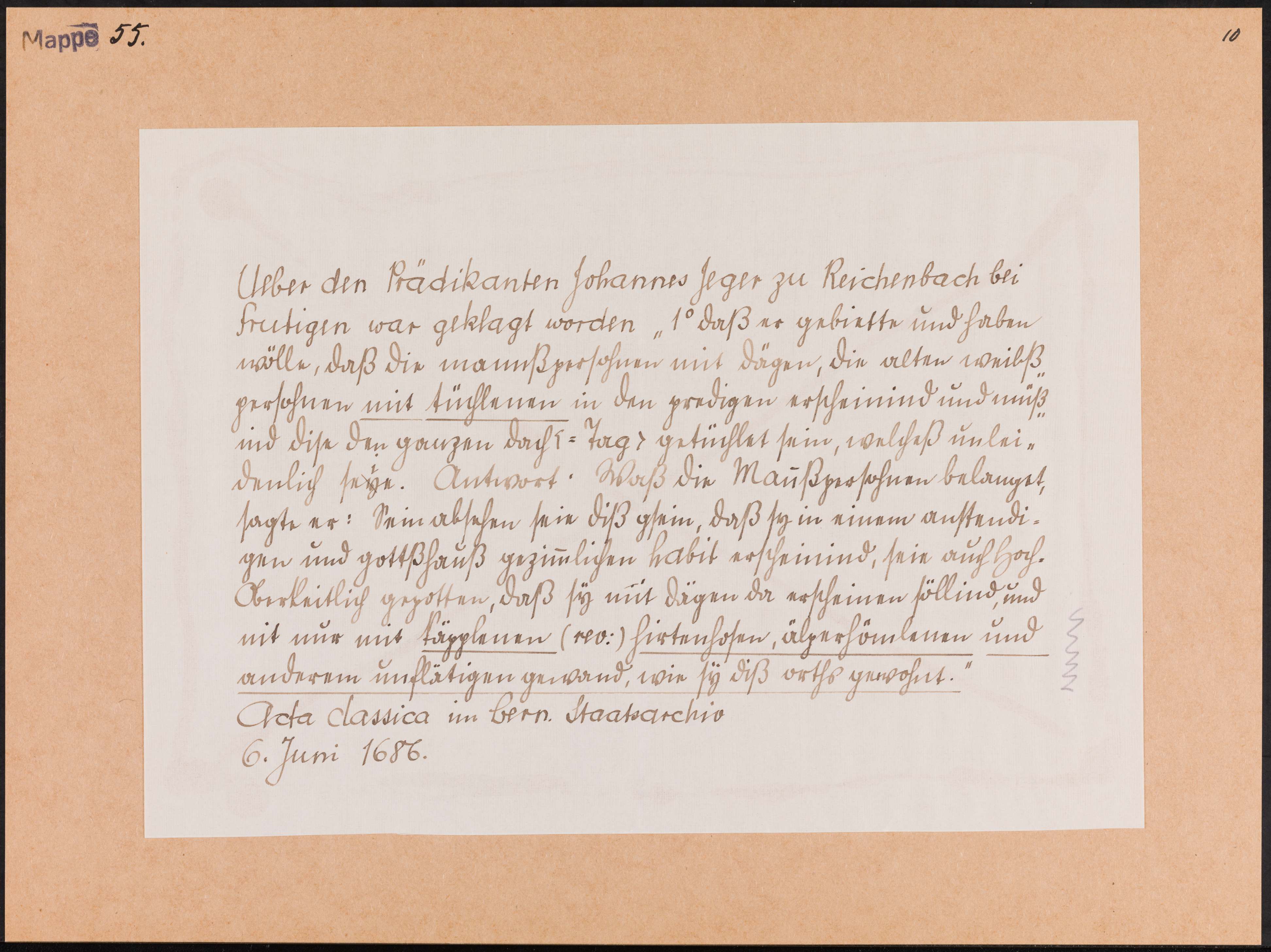 Aus Acta classica im bern. Staatsarchiv
