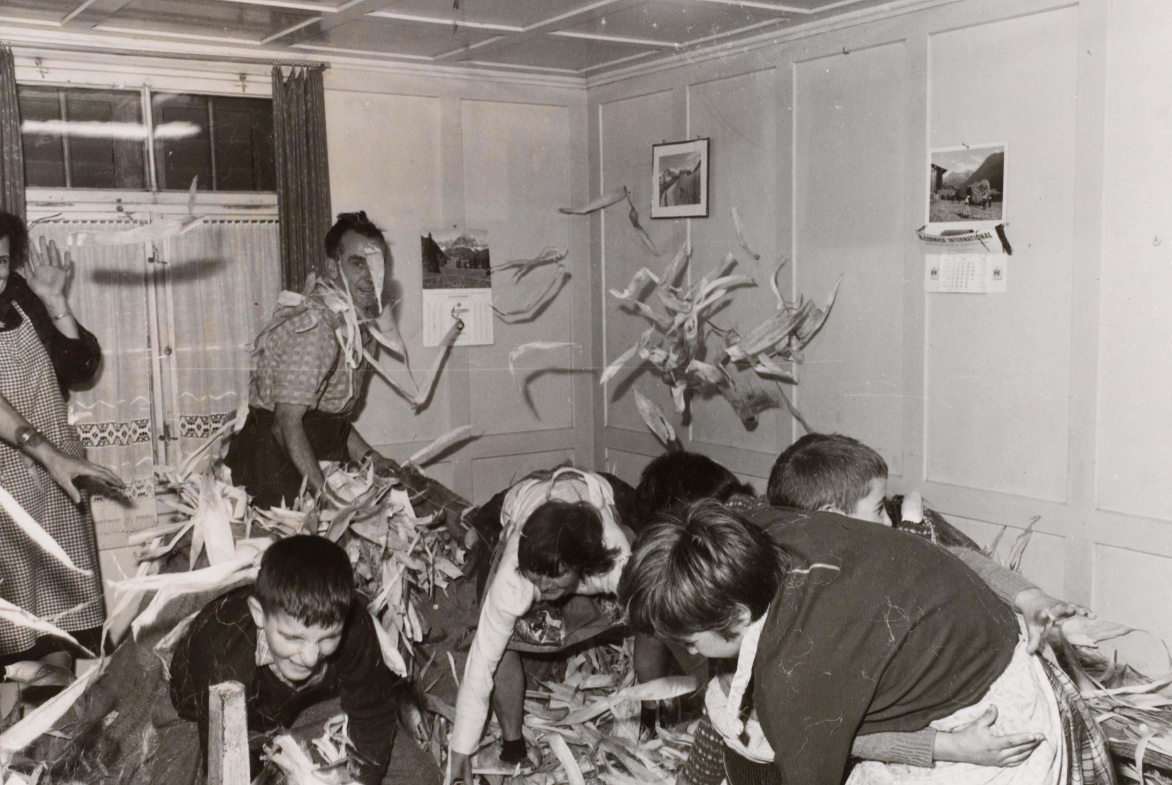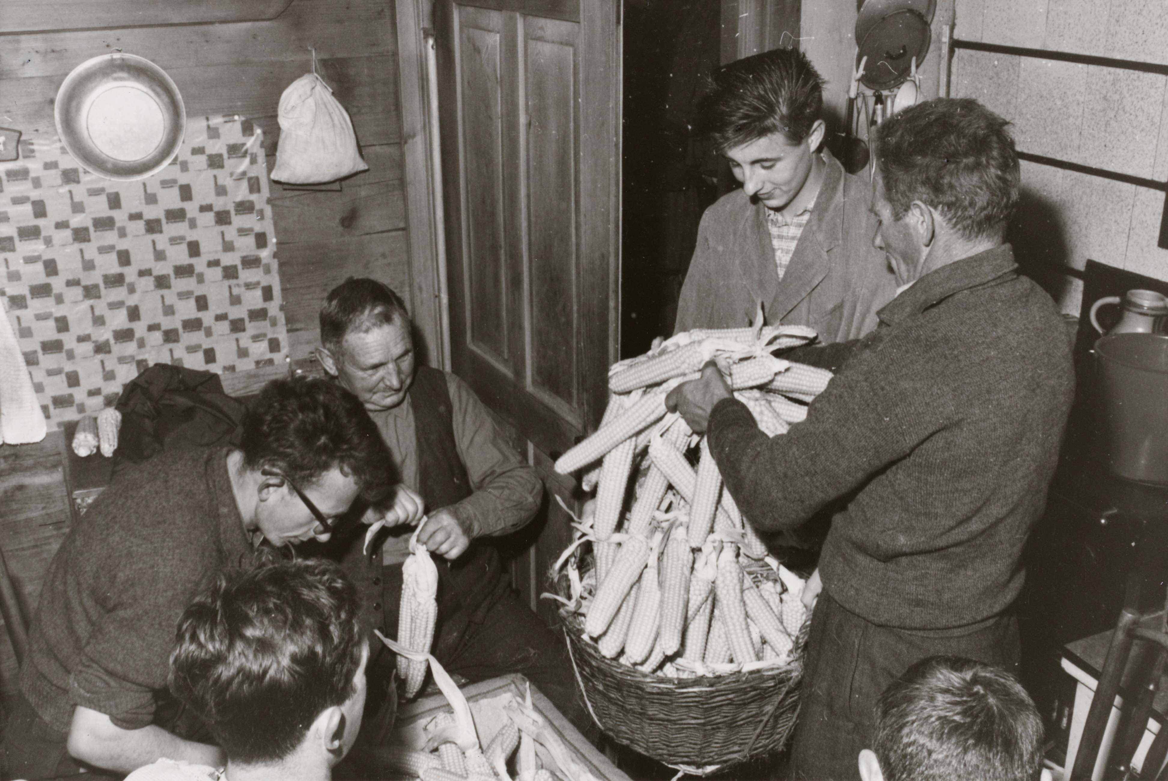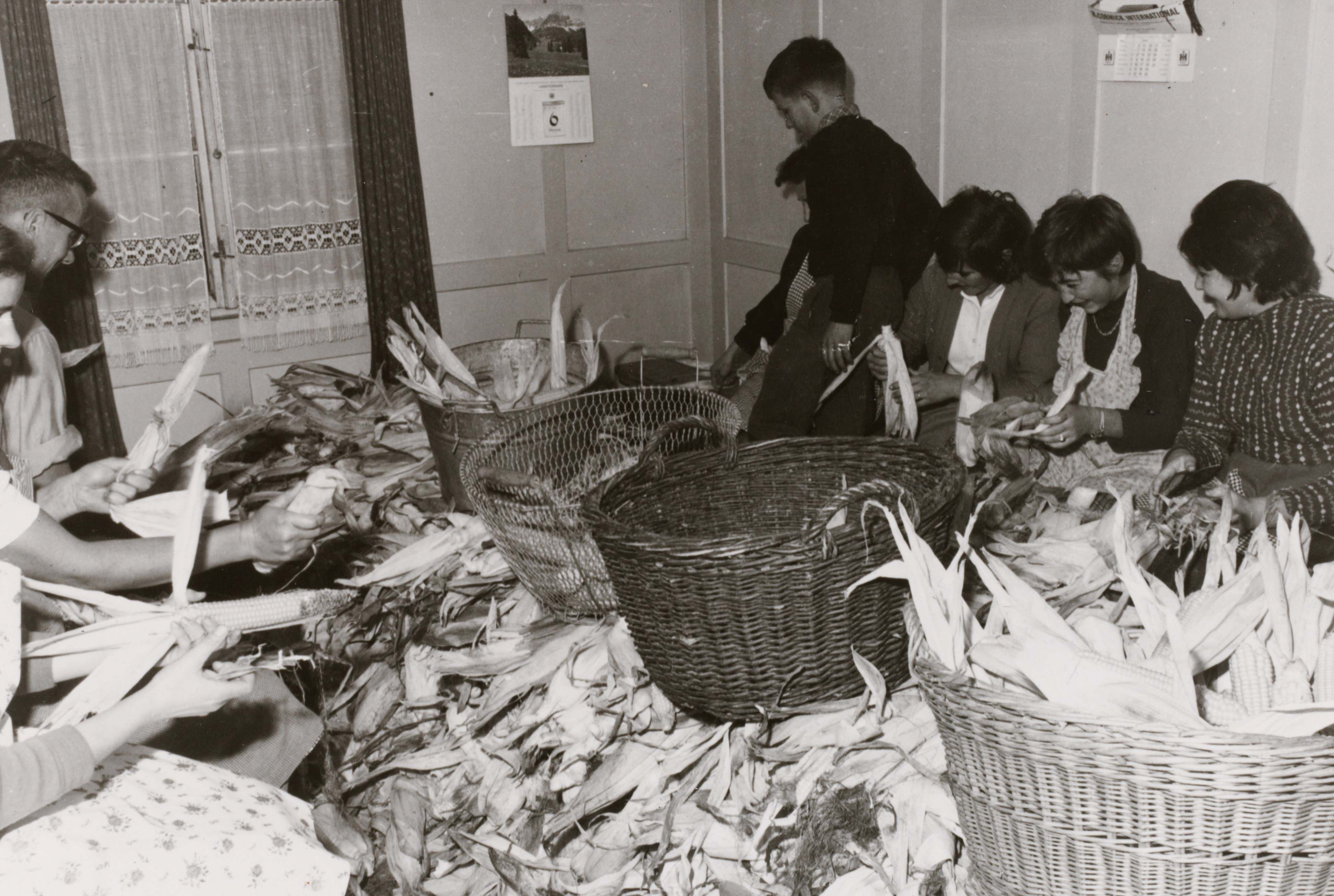 "Uusschellete" in Buchs (Abendliche Zusammenkunft zum Enthülsen (Schälen) der Maiskolben)