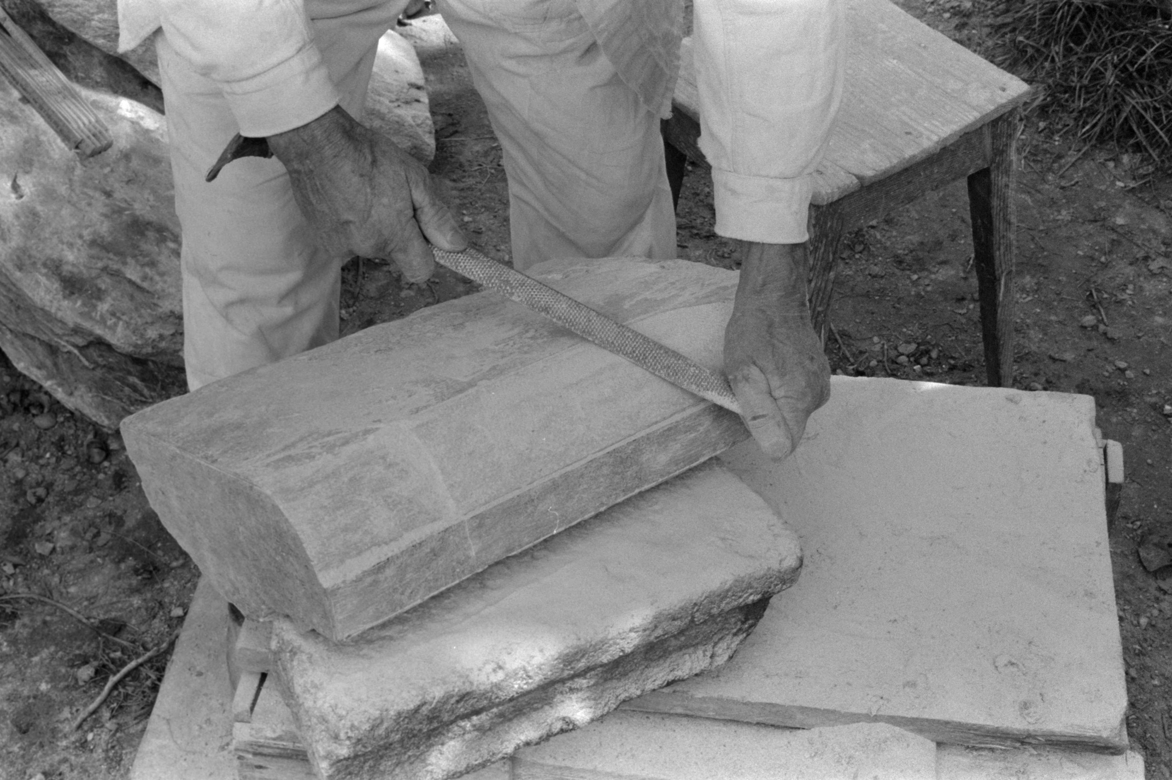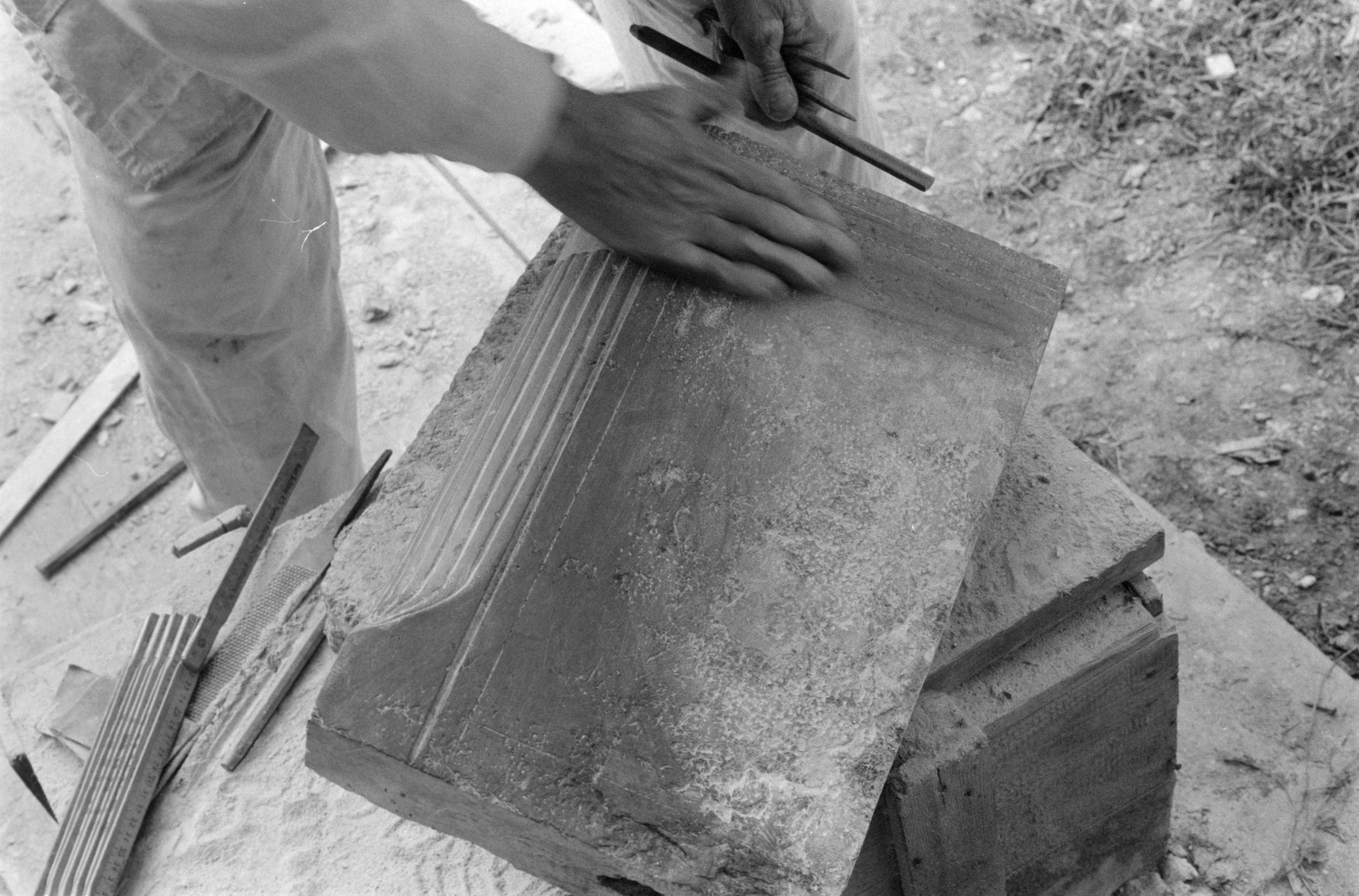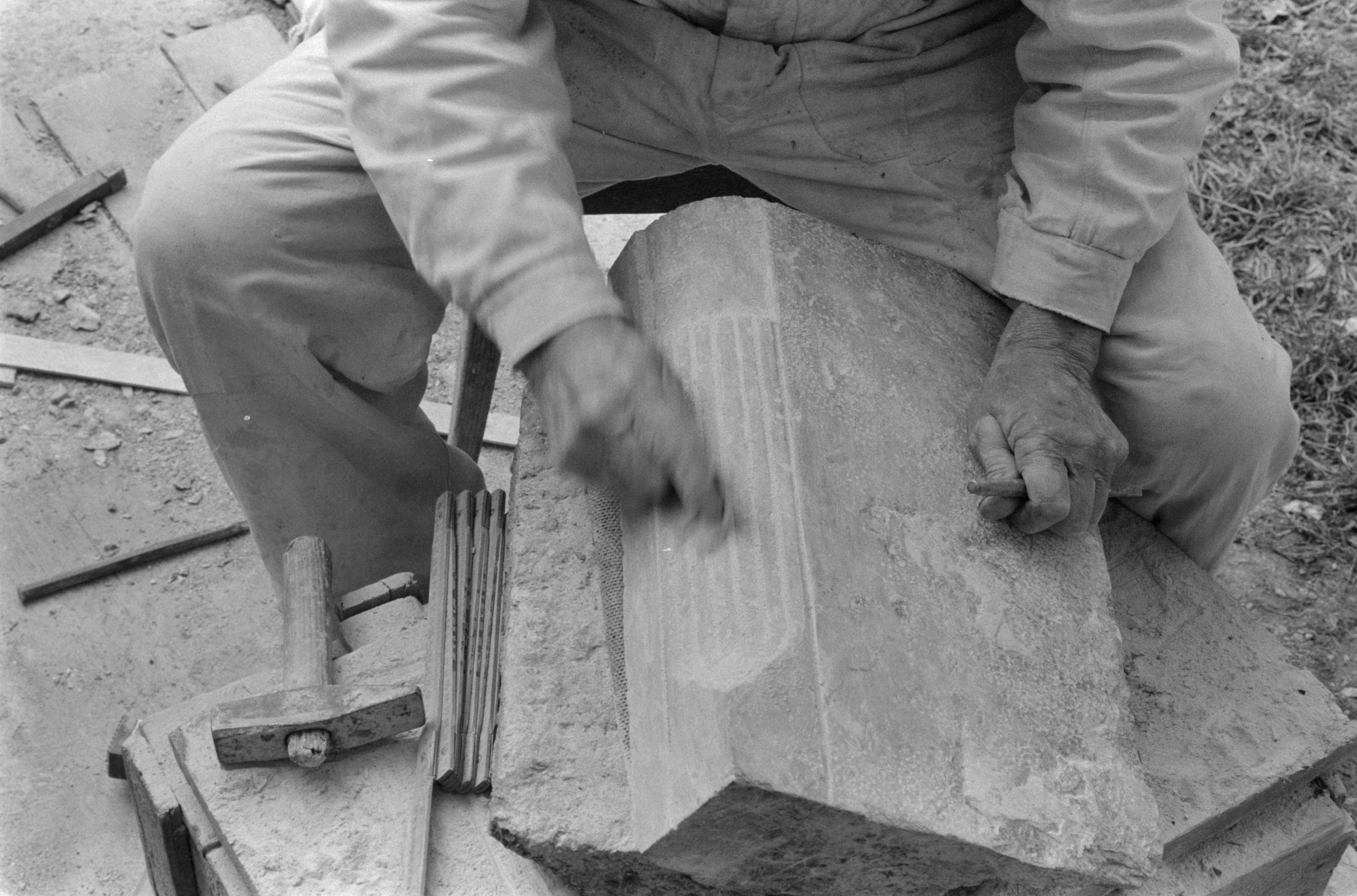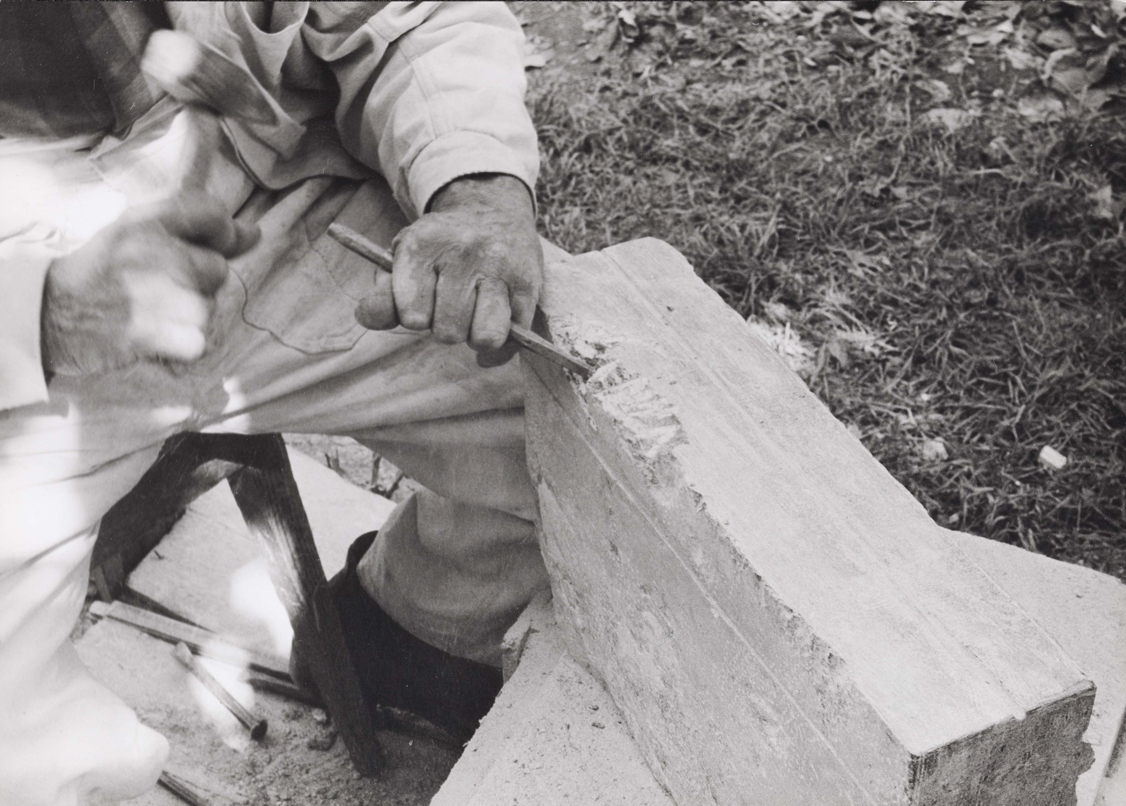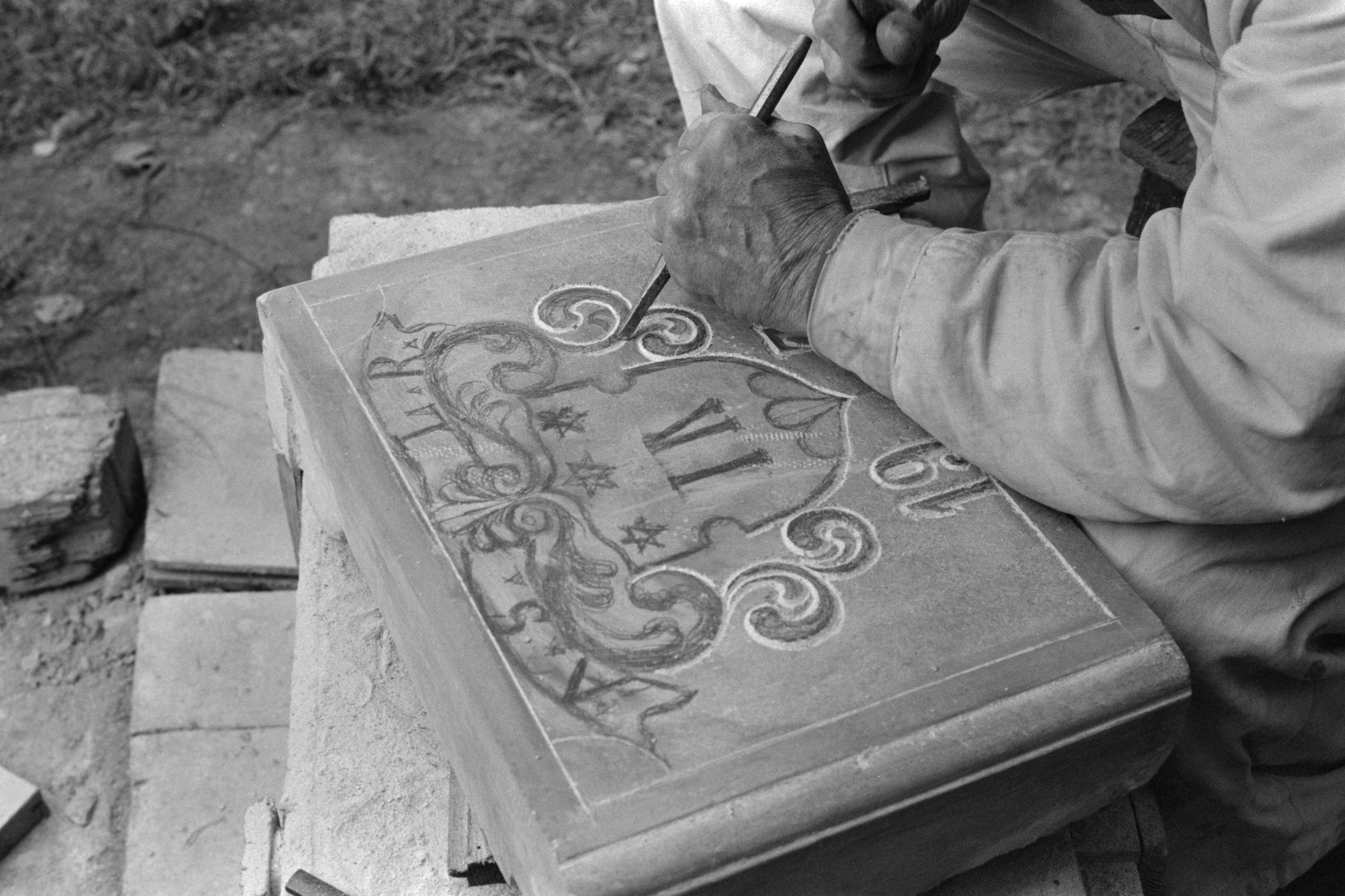 [Meisseln des Wappens]