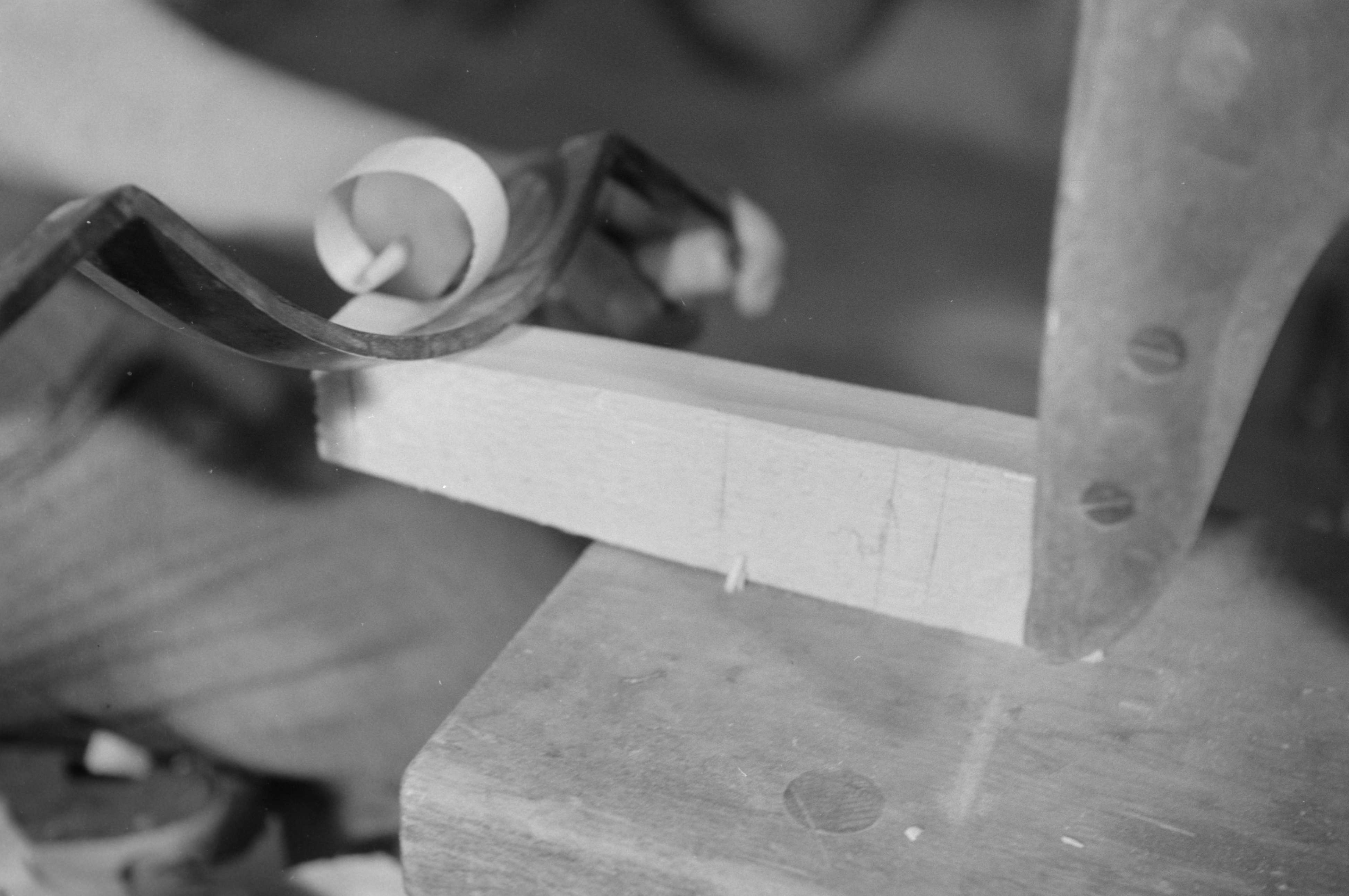 27. (fig. 15) La première etappe du corroyage est l’ébutage où l’on enlève les parcelles de chair avec un „couteau à ébuter“.