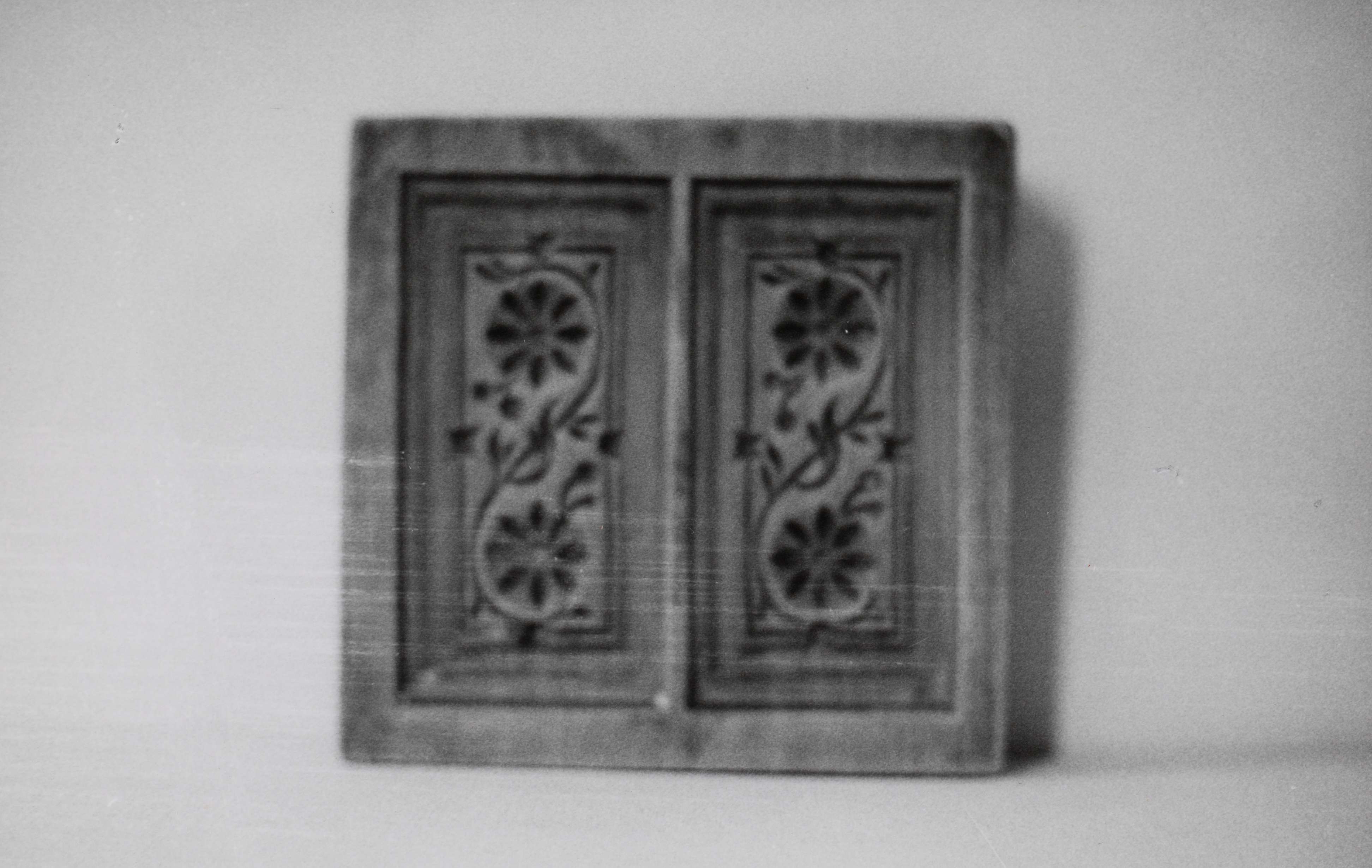 Doppelmodel aus Birnbaum mit 2 gleichen S-förmigen Blütenranken, beide rechteckig gerahmt.