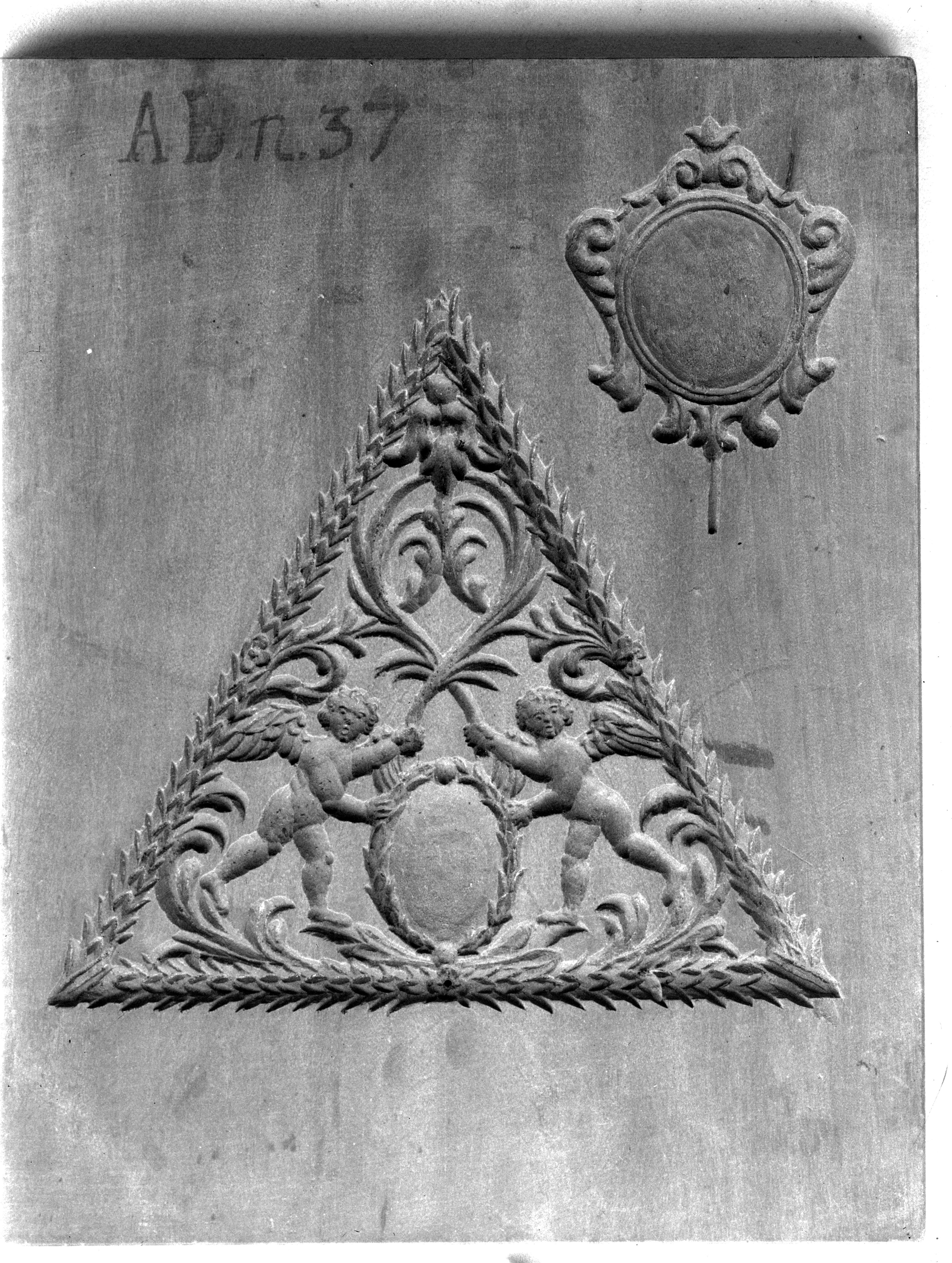 Dreieckornament mit Medaillion u. Engel-putten