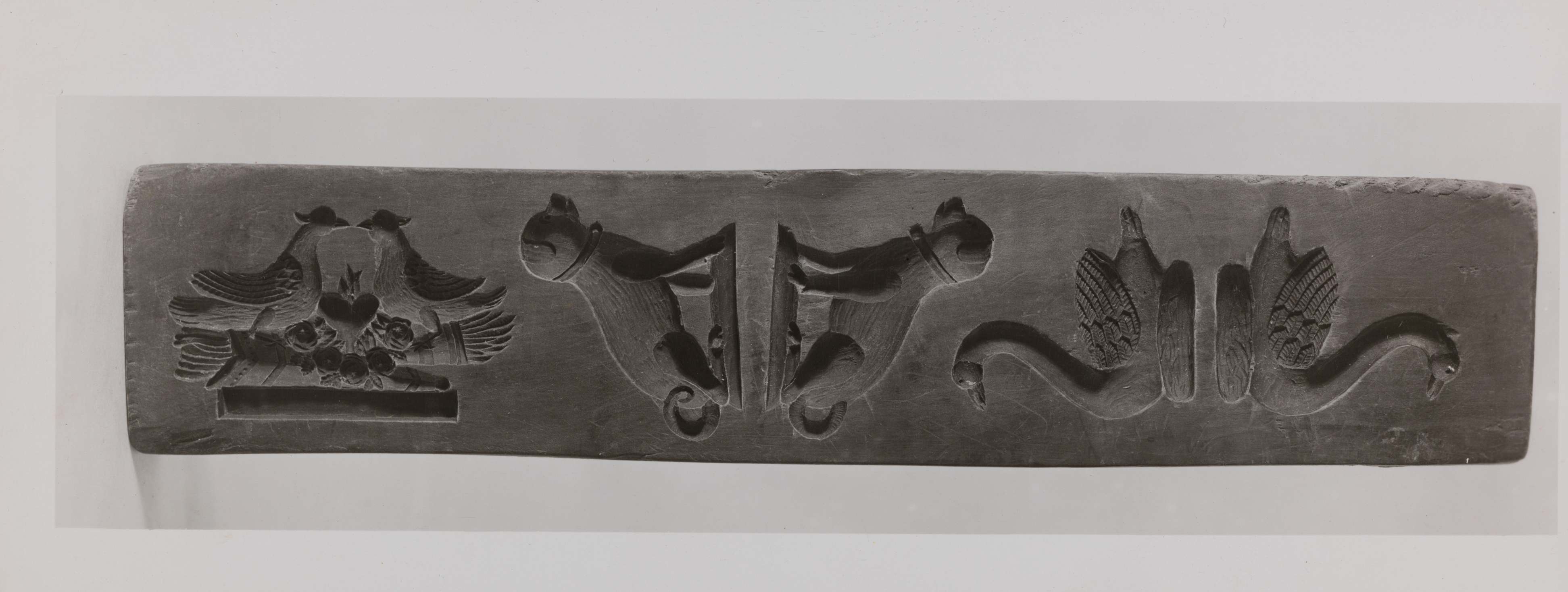 SGV_07P_0313412 teiliger Holzmodel aus Birnbaum. Schwan/Fuchs/Eber/Haus u. Brunnen/Kanone/Hahn u. Henne. Storch/Wiedehopf/brütende Henne im Korb/Veilchen/Rosenkorb/Kirche