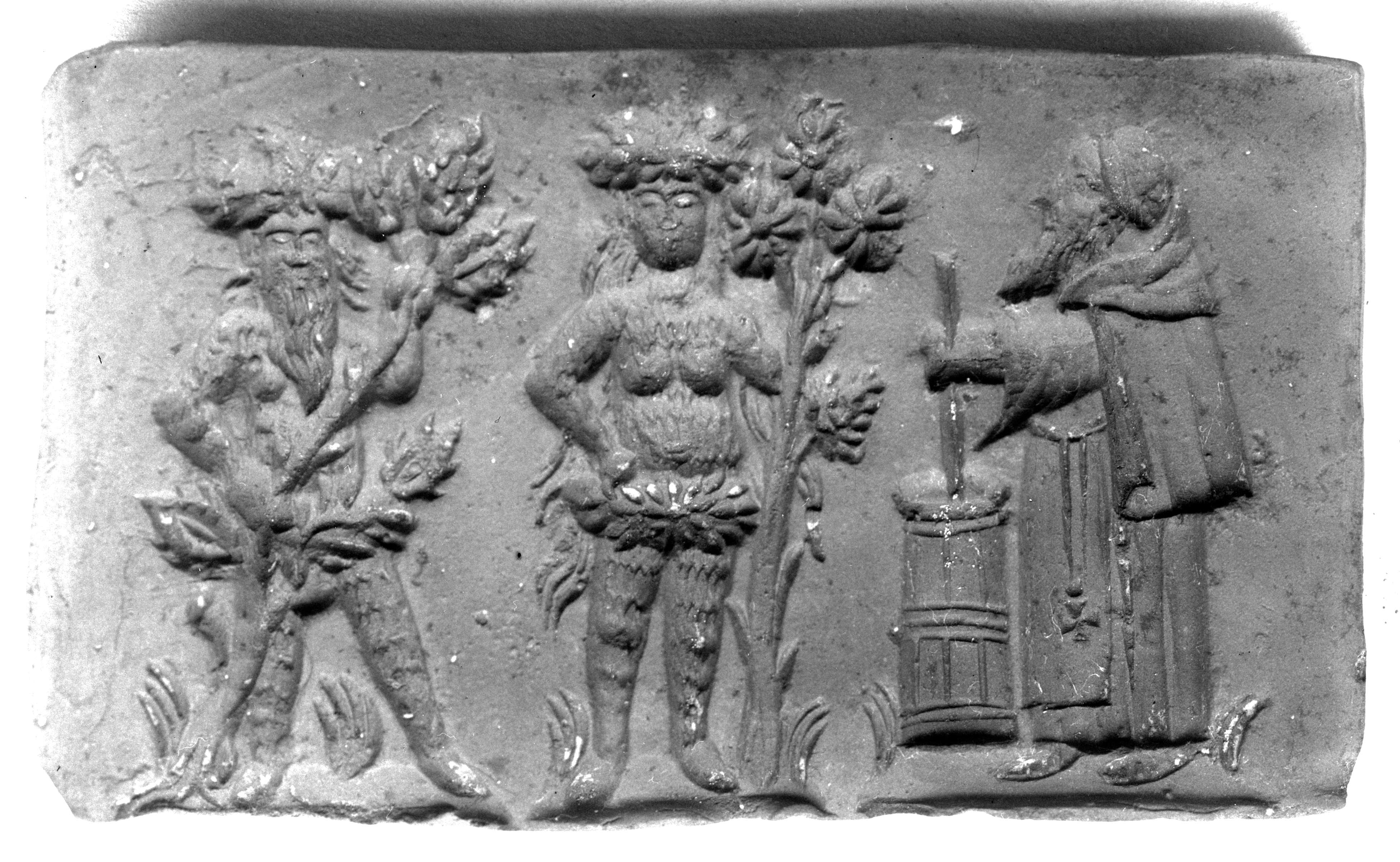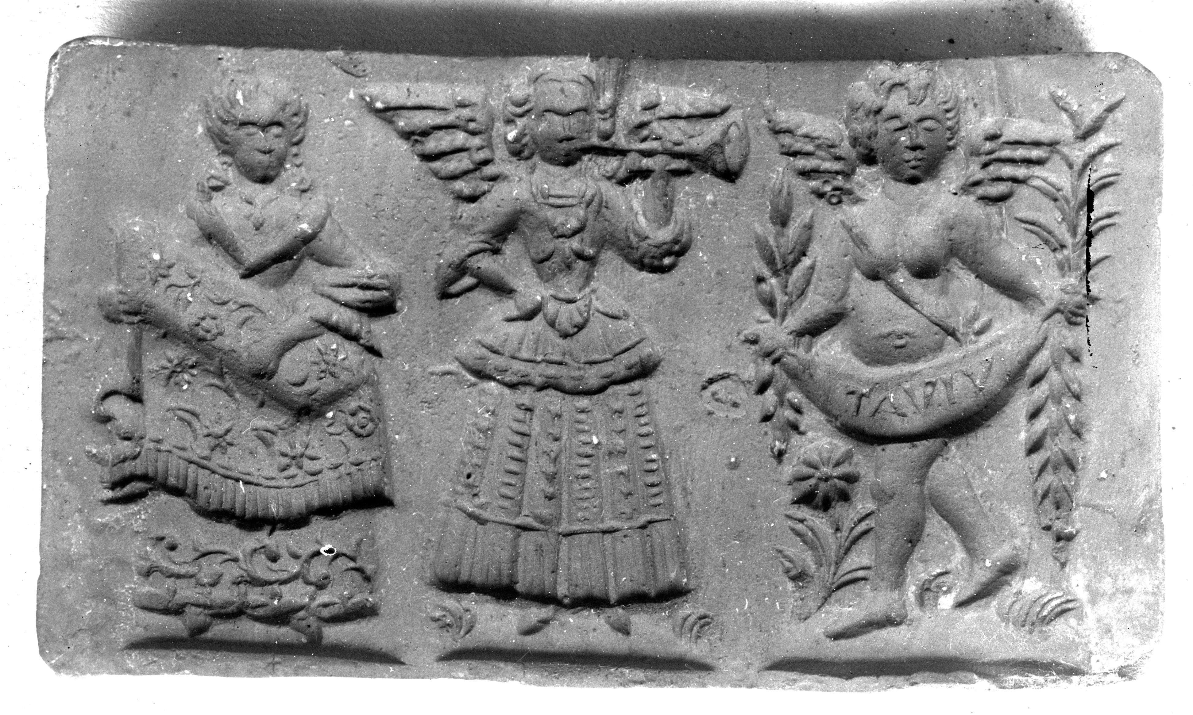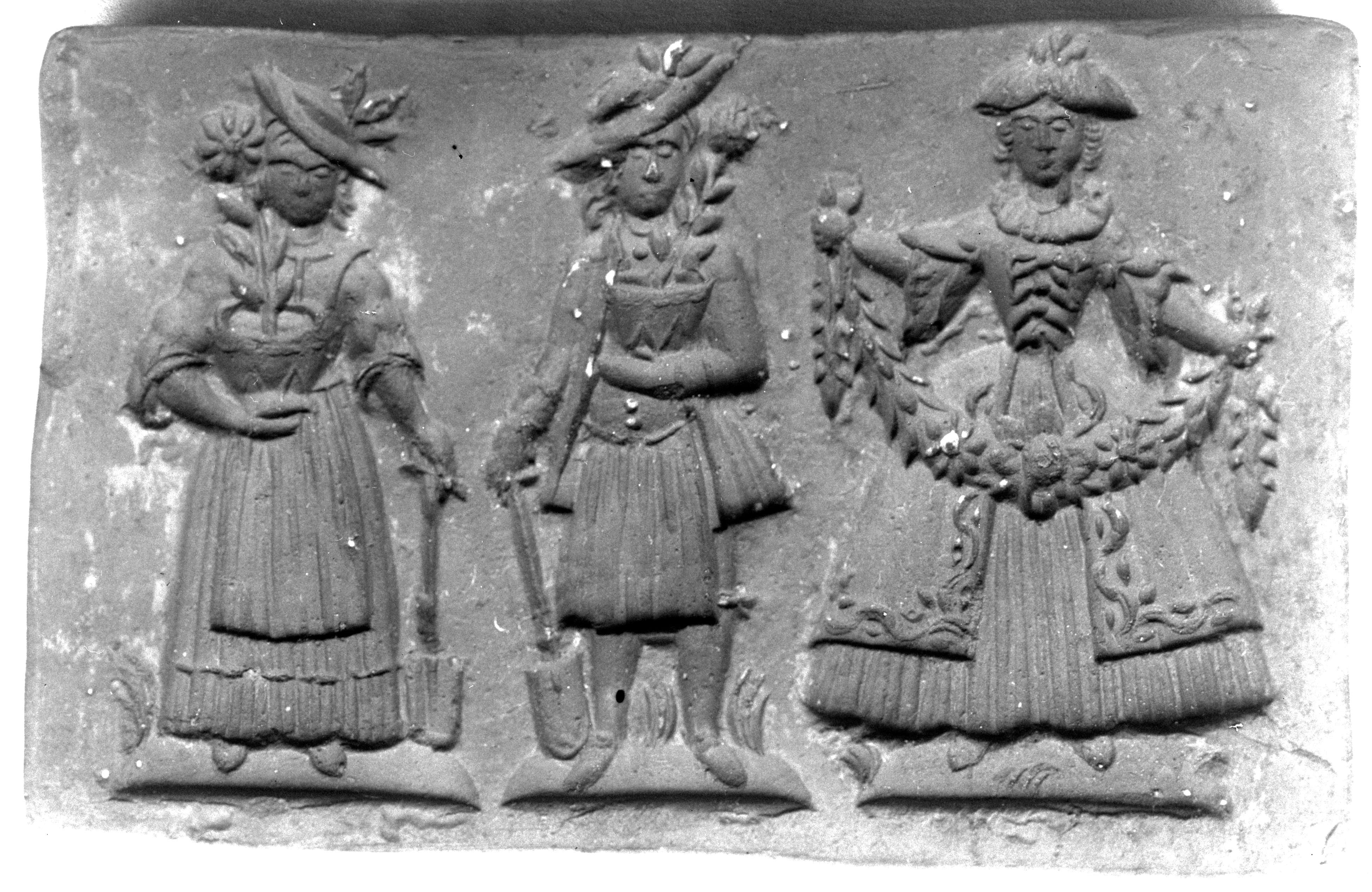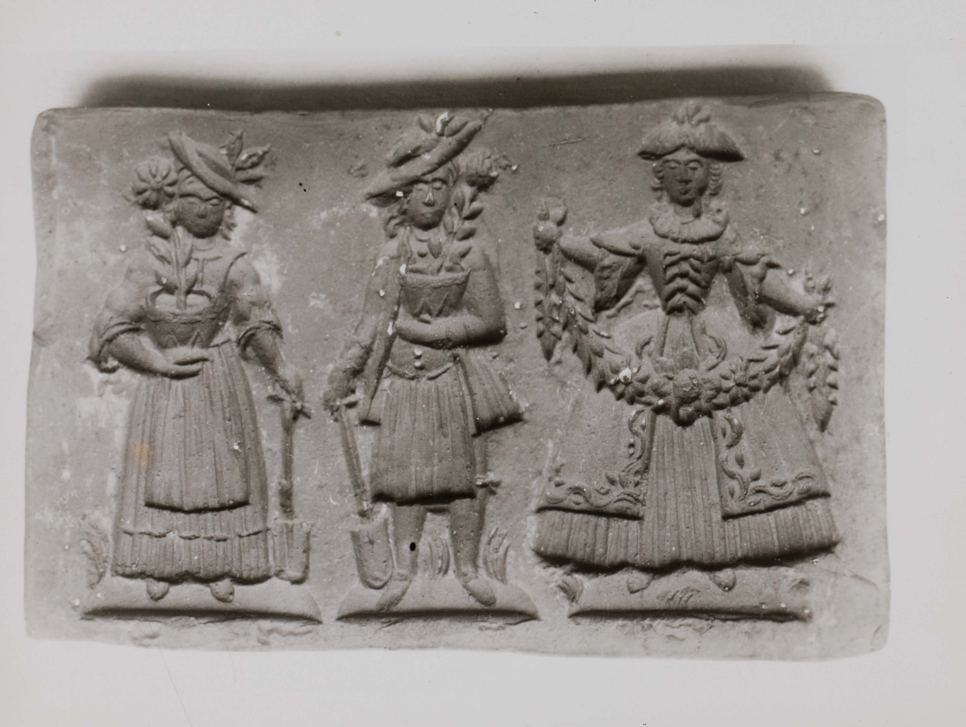 SGV_07N_00322Gärtnerin, Gärtner und Dame mit Blumengirlande, alle drei in der Tracht des 18. Jhs.