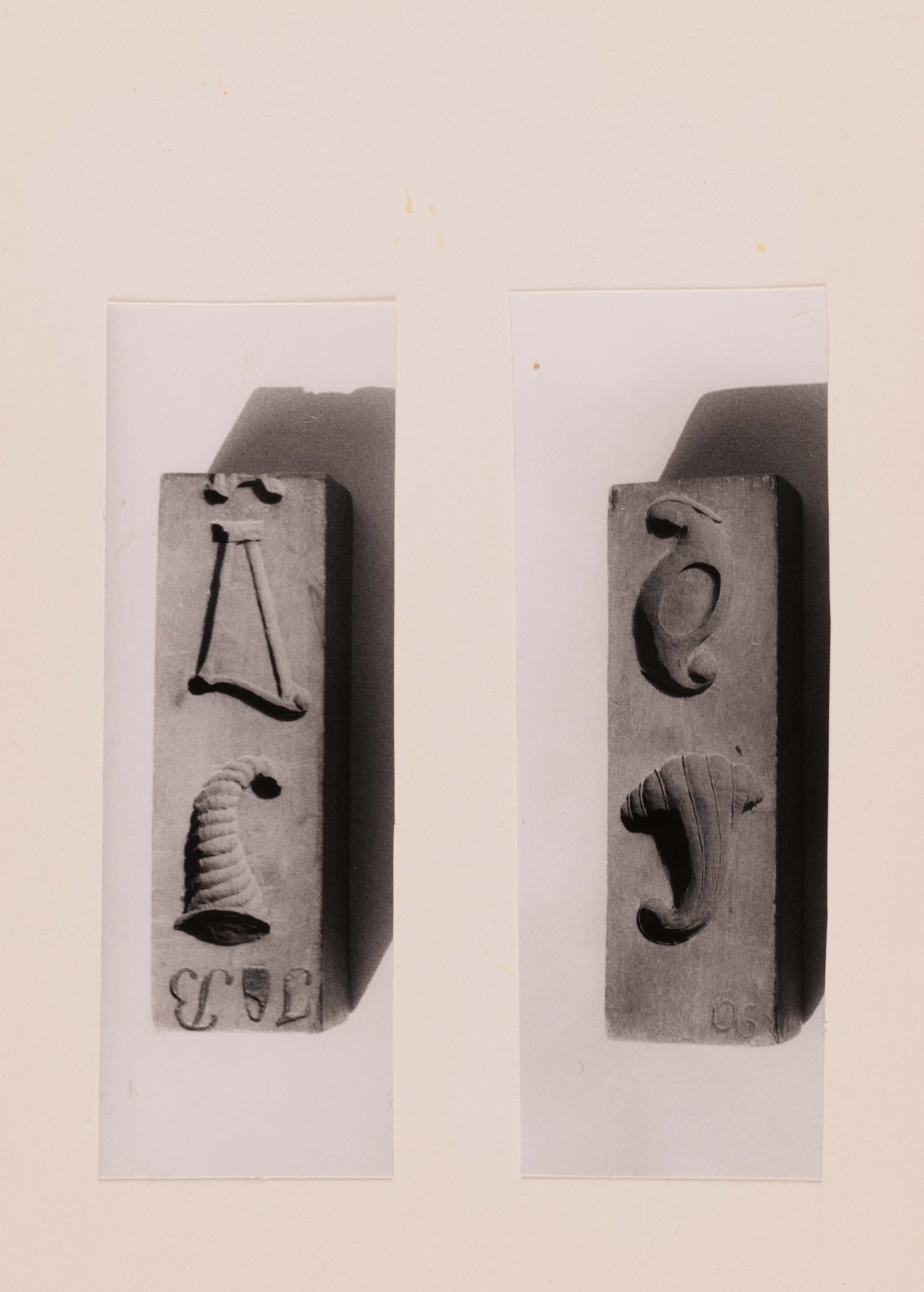 Pilzförmiges Blatt und Paragraphenzeichen. Umseitig: Füllhorn, Harfe und die Abgesägten Enden einer Leier. L.o. die Nr.90. oben die Brandmarke J[?]B