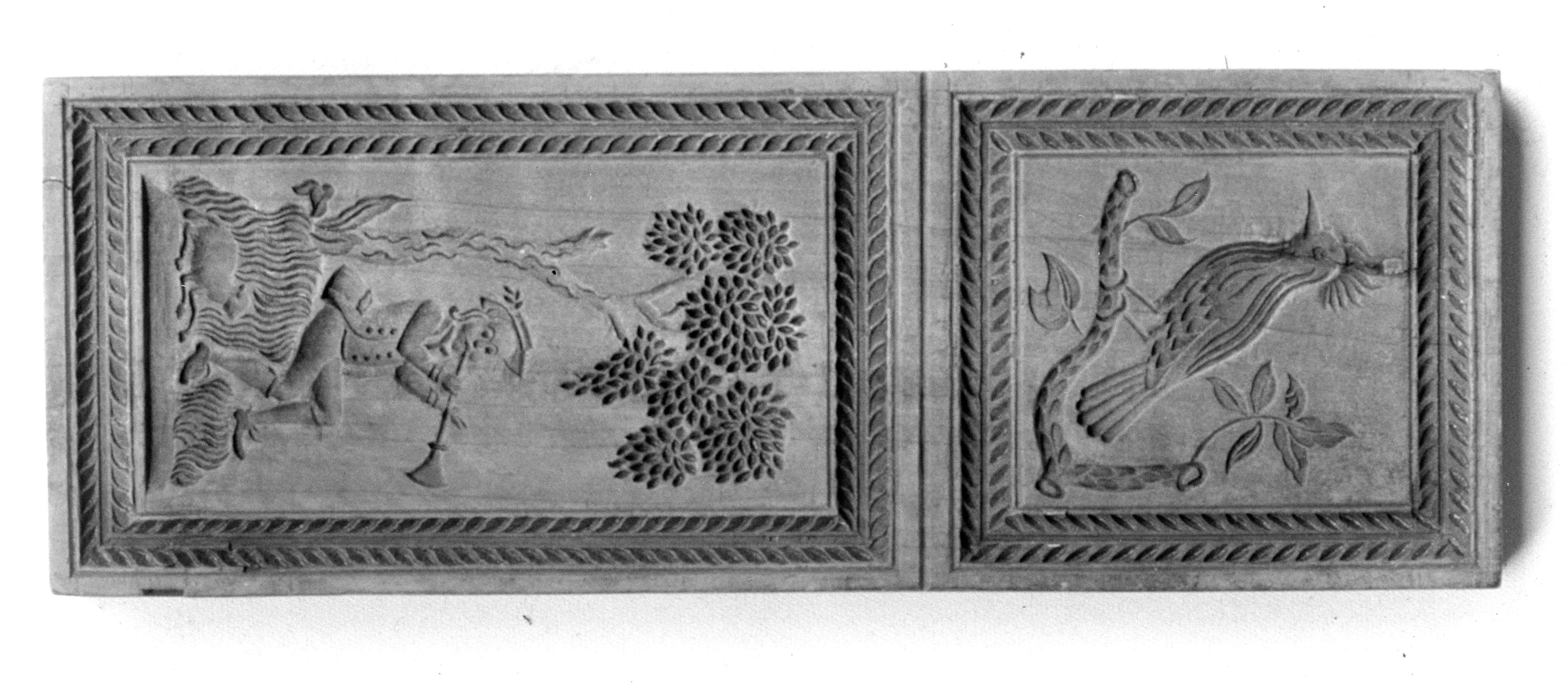 Links: Aristoteles u. Phyllis Rechts: Bauer mit Geissel u. Henkelkorb