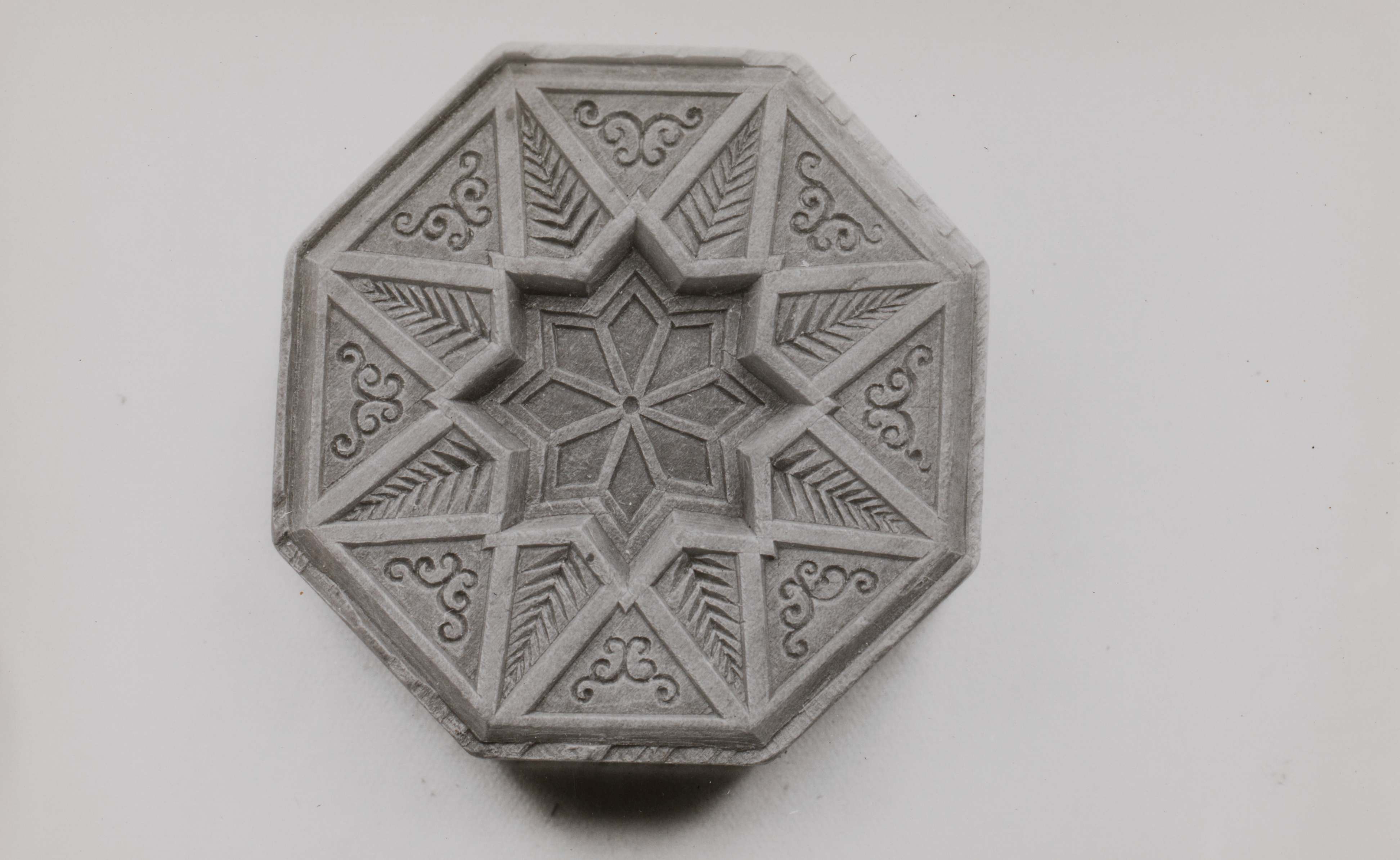 Sternförmiges Ornament in verschiedenen Tiefenlagen, in ein Oktogon eingeschlossen.
