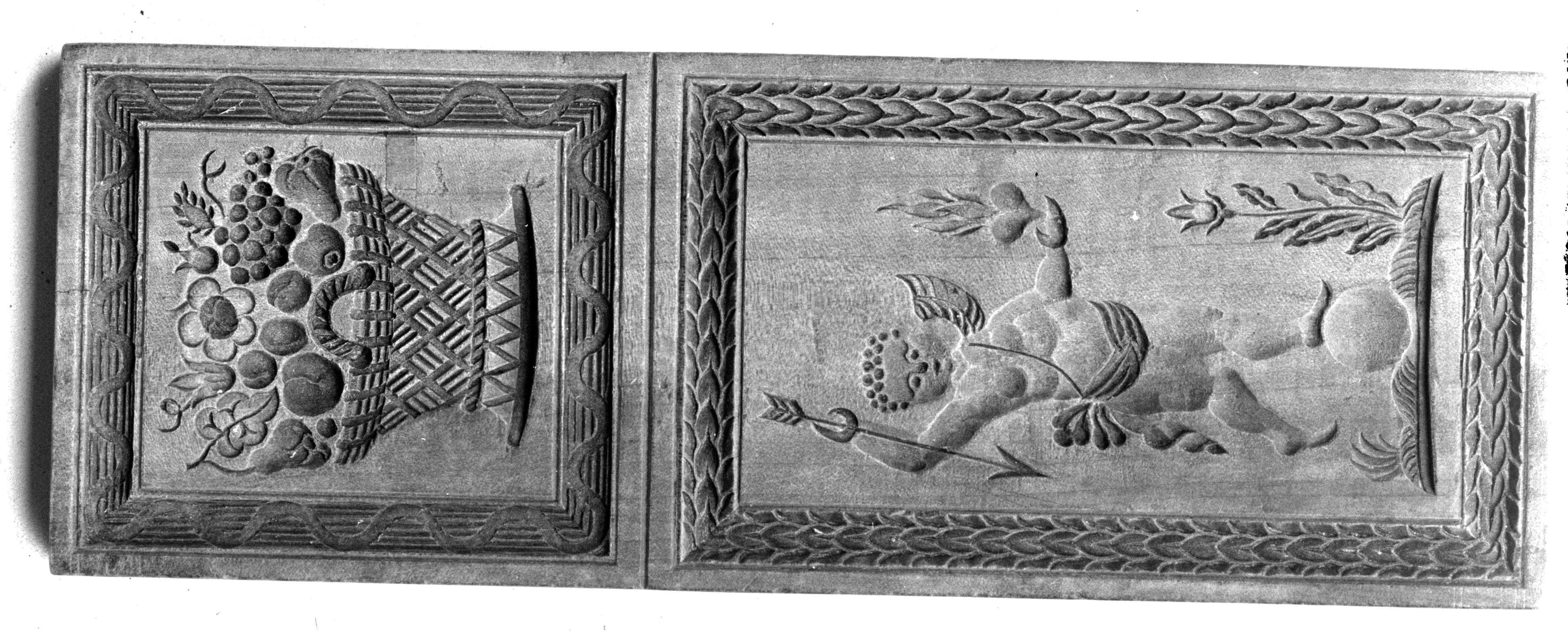 Früchtekorb u. Armor mit Pfeil u. brennendem Herz