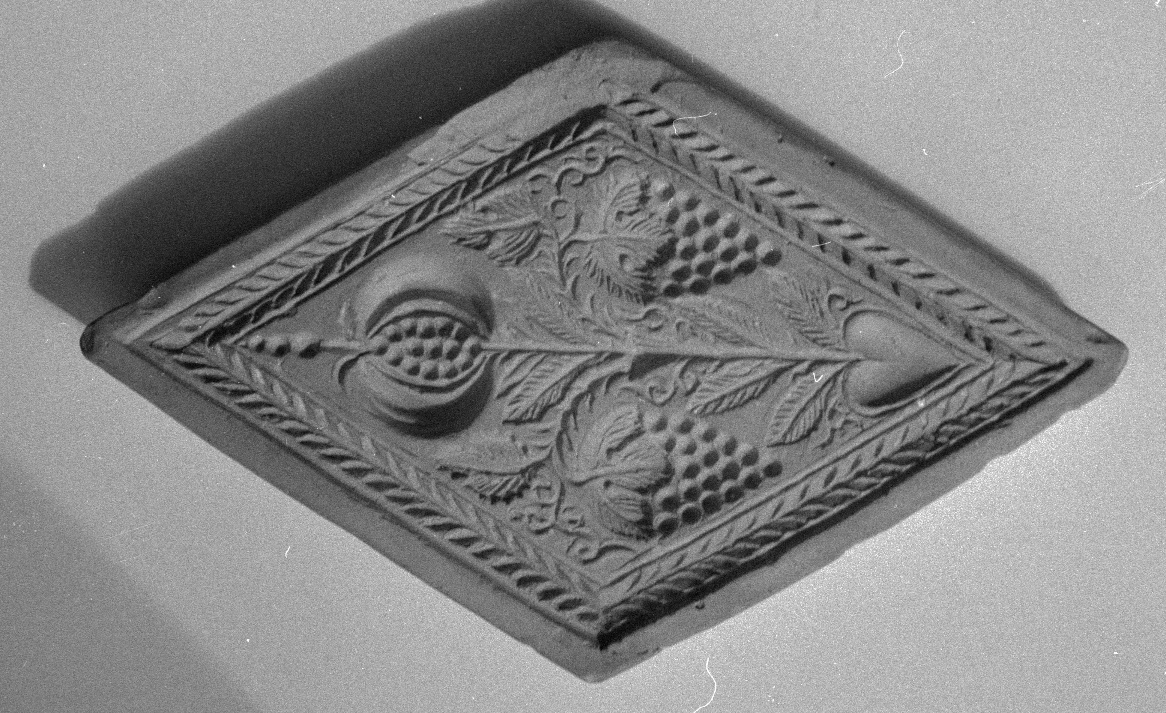 [Granatapfel, Trauben und Herz in Rautenform]