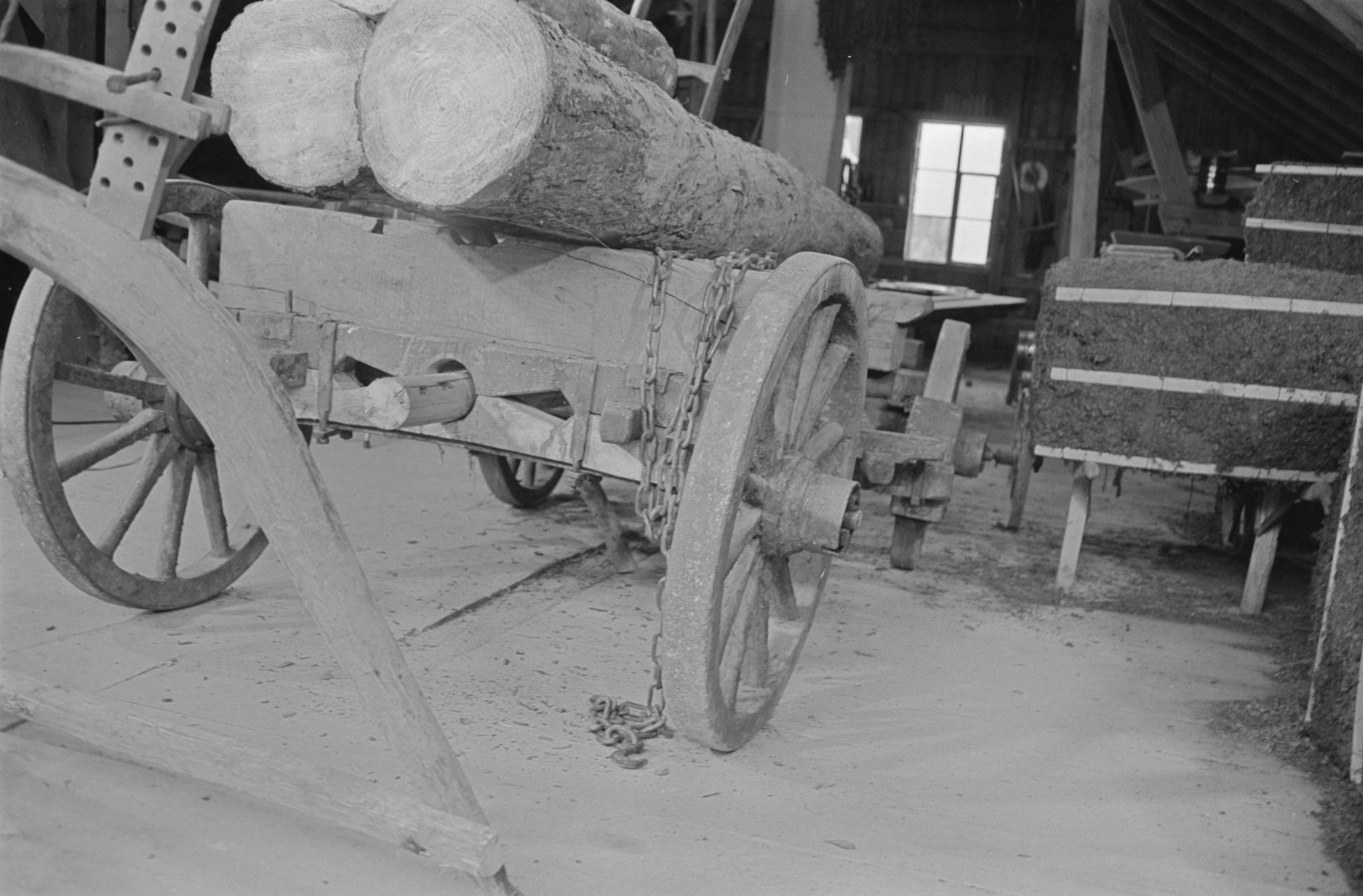 [Wagen mit Holzstämmen]