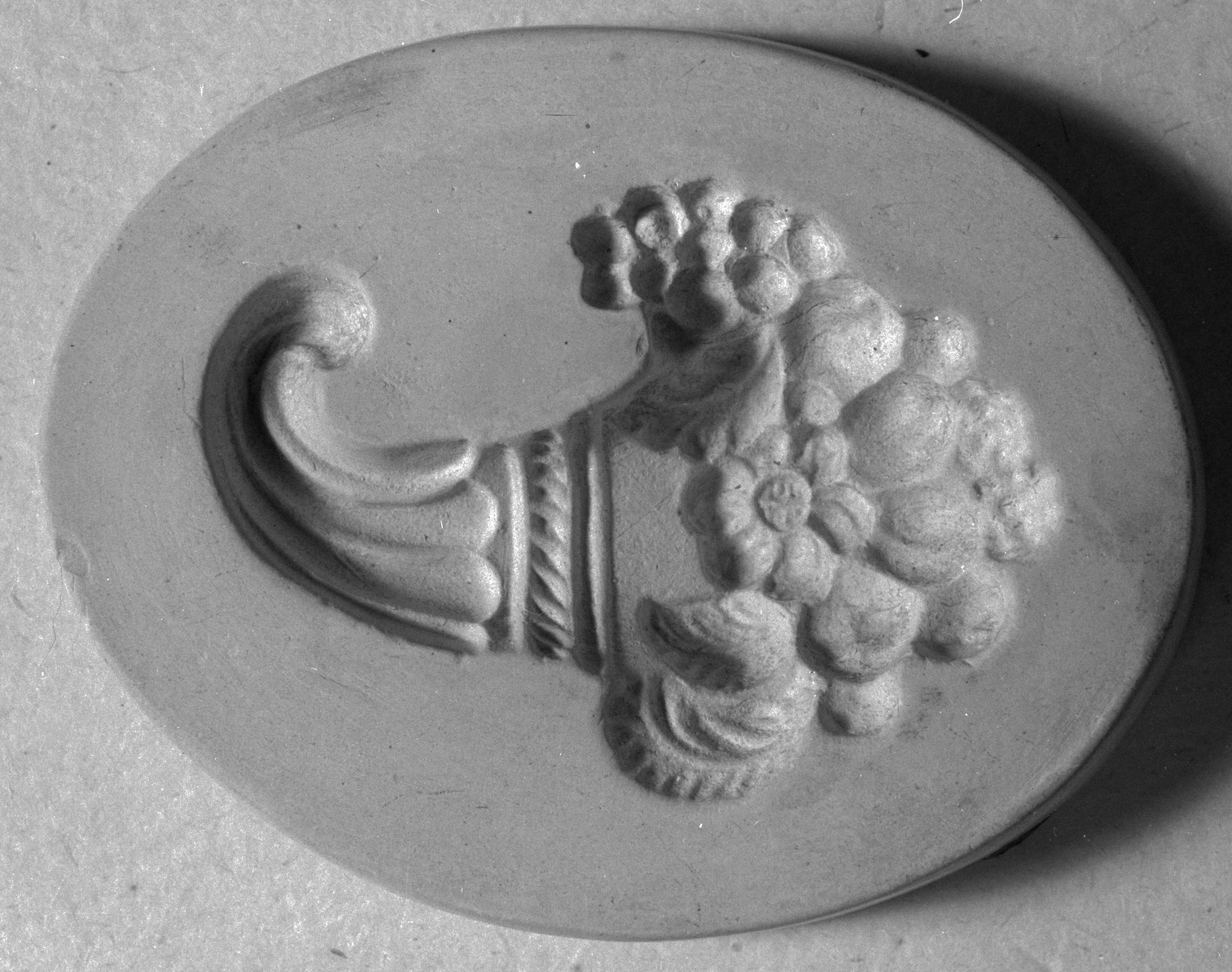 Ornamentfüllung mit Mitttelrosette und symmetrischen Blattvoluten