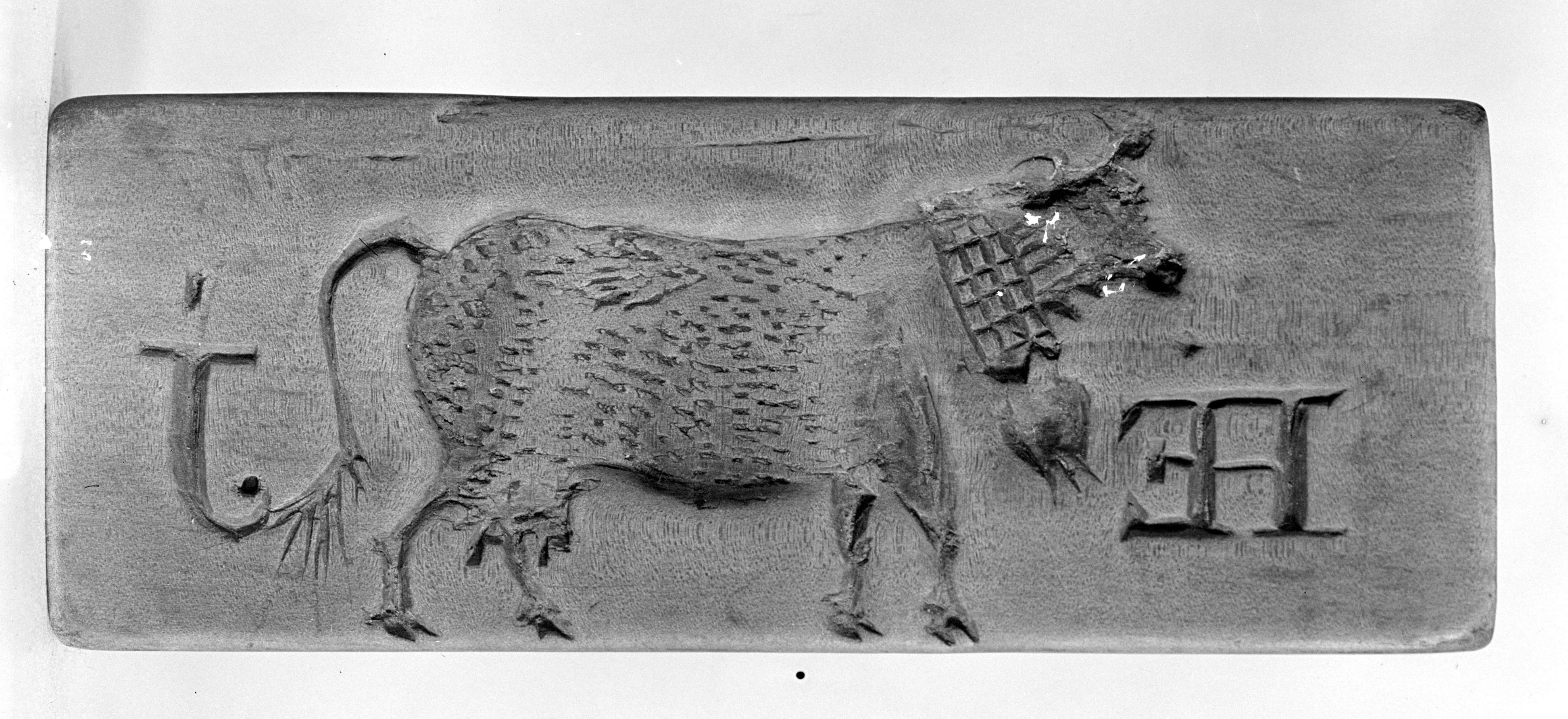 Kuh mit Treichel und den Initialen HE J (Heinreich Jenny)