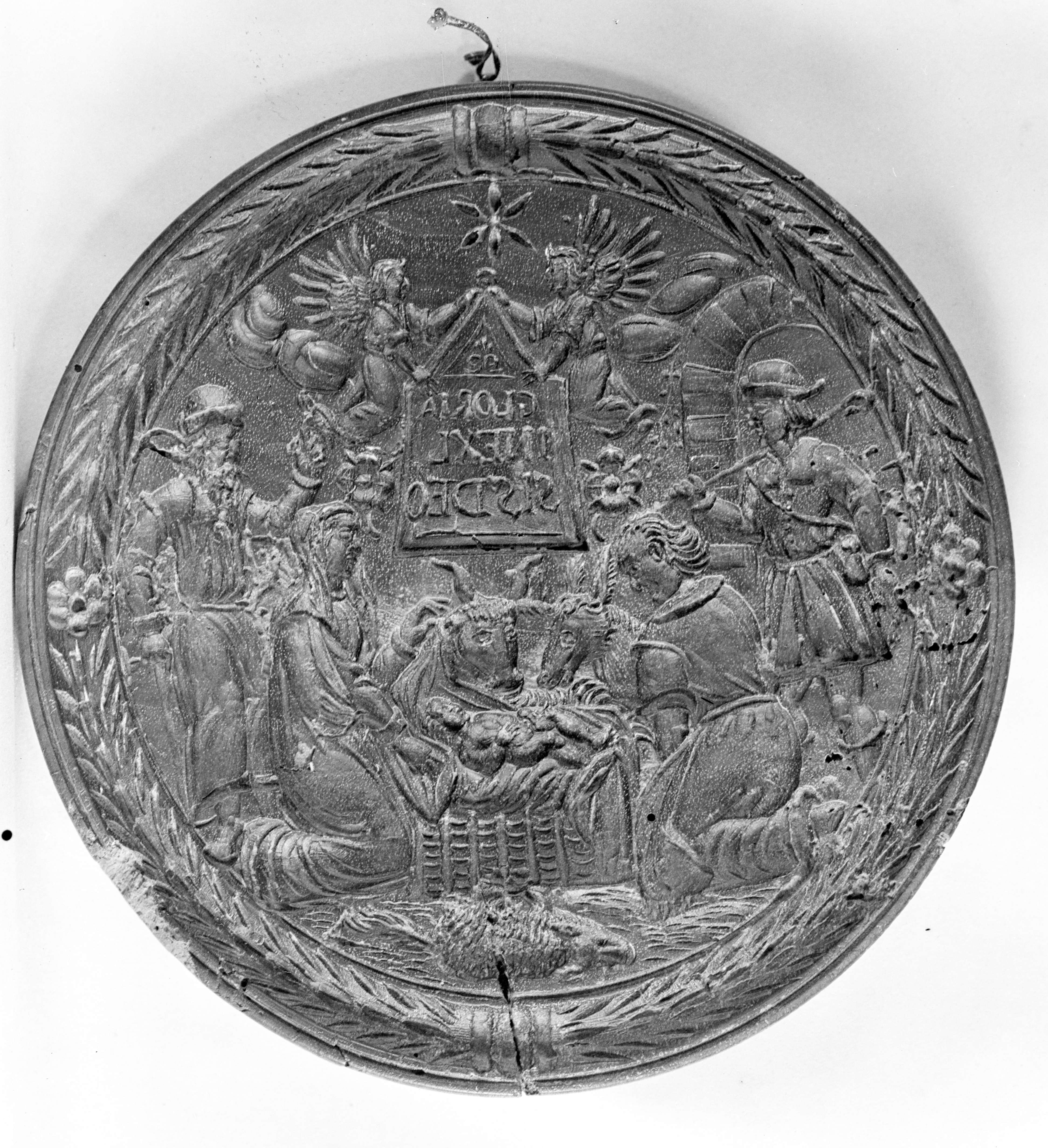Anbetung der Hirten im Stall. Gloria/ inexl/ sis Deo