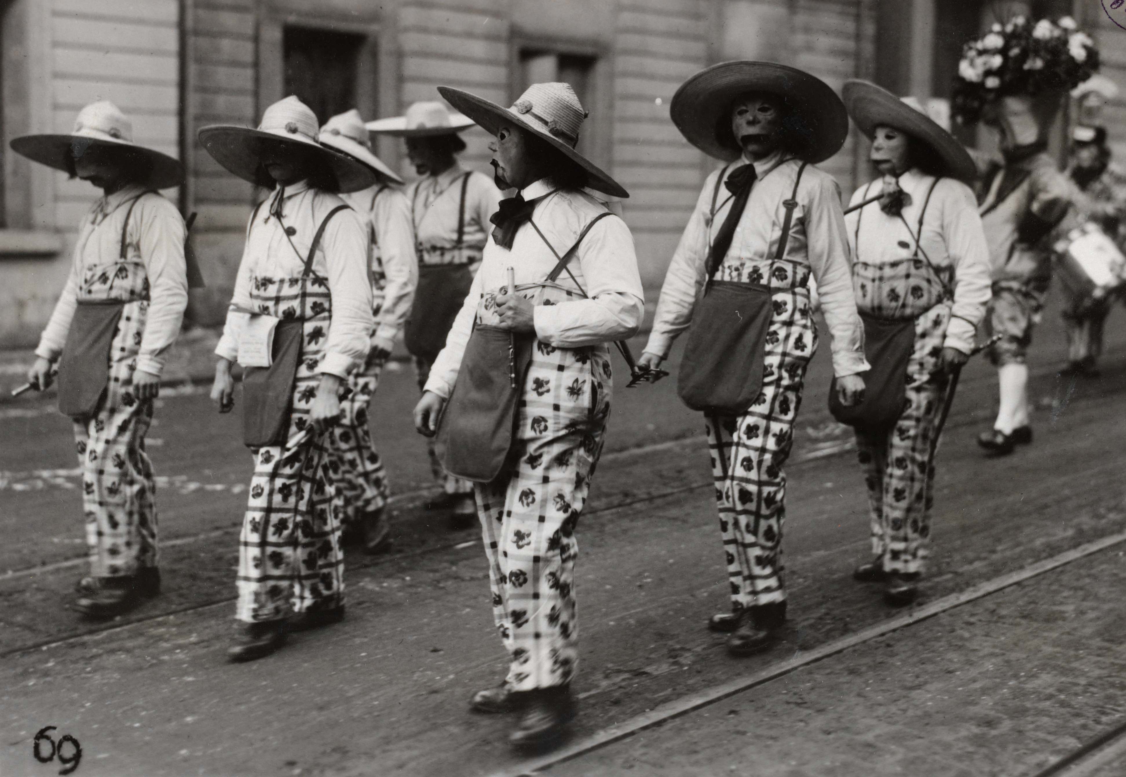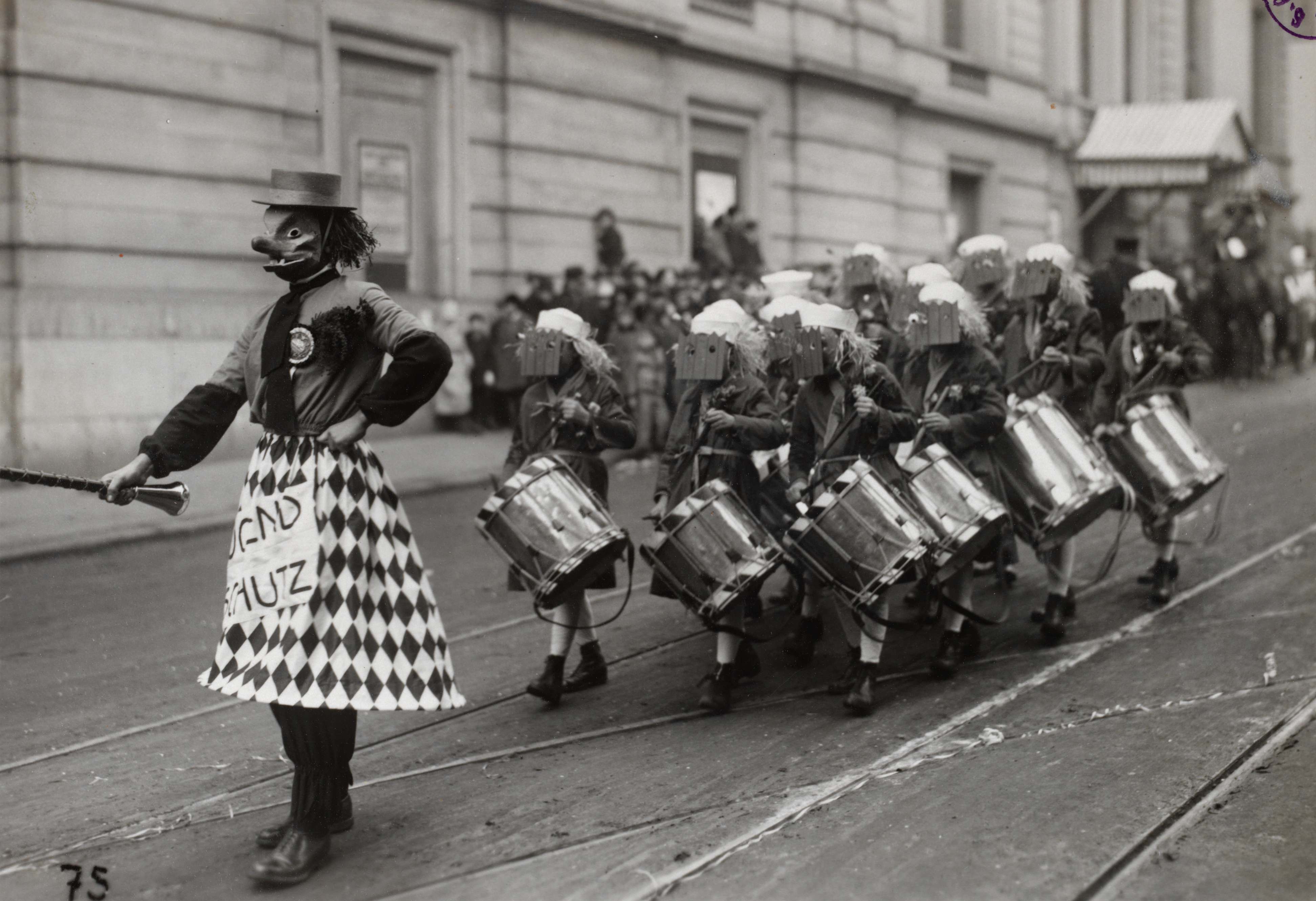 Basler Fastnacht: Voran der Tambourmajor, hintennach die Trommler.