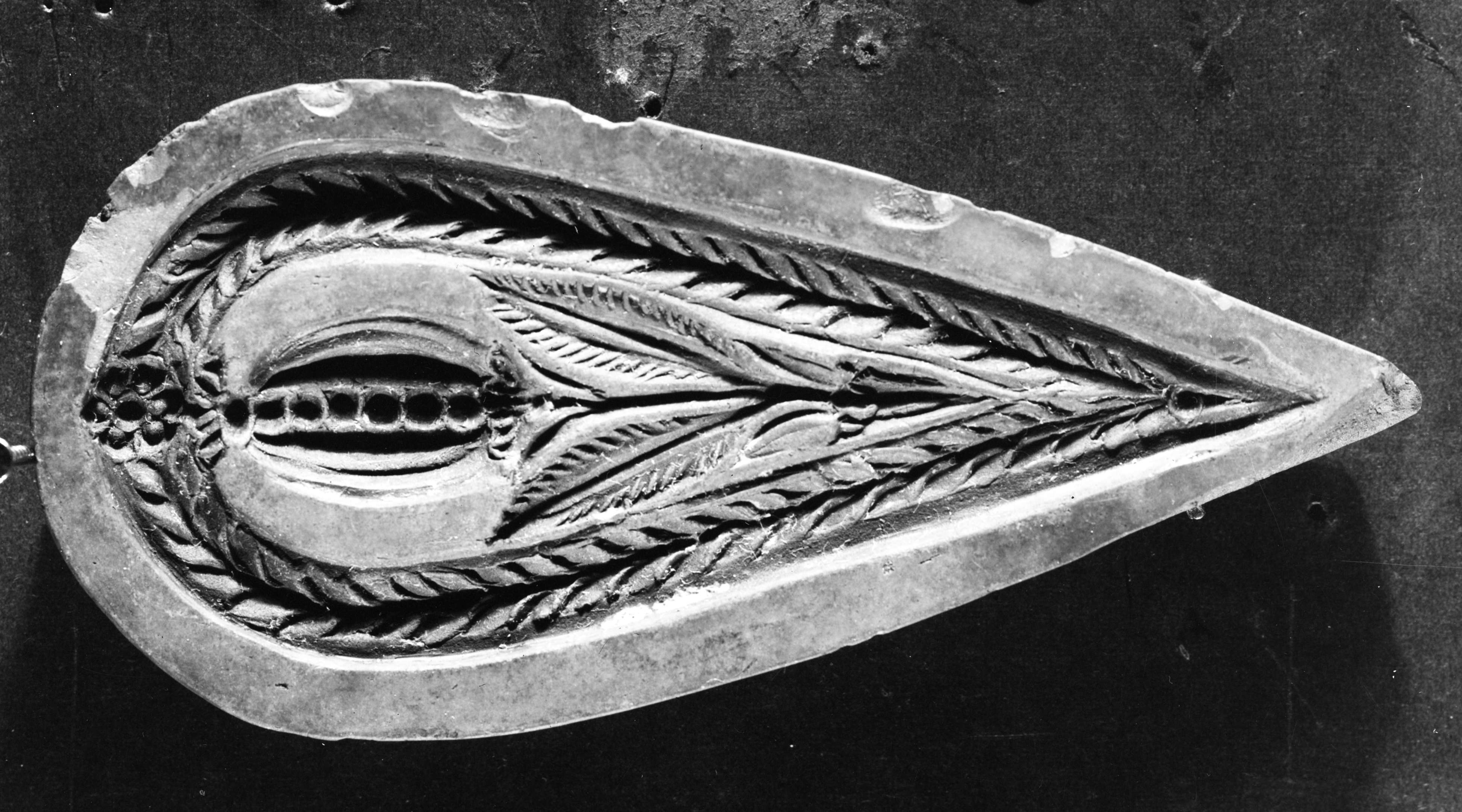 4 reihiger Holzmodel aus Birnbaum mit je 5 Darstellungen, meist Figuren auf einer Reihe.