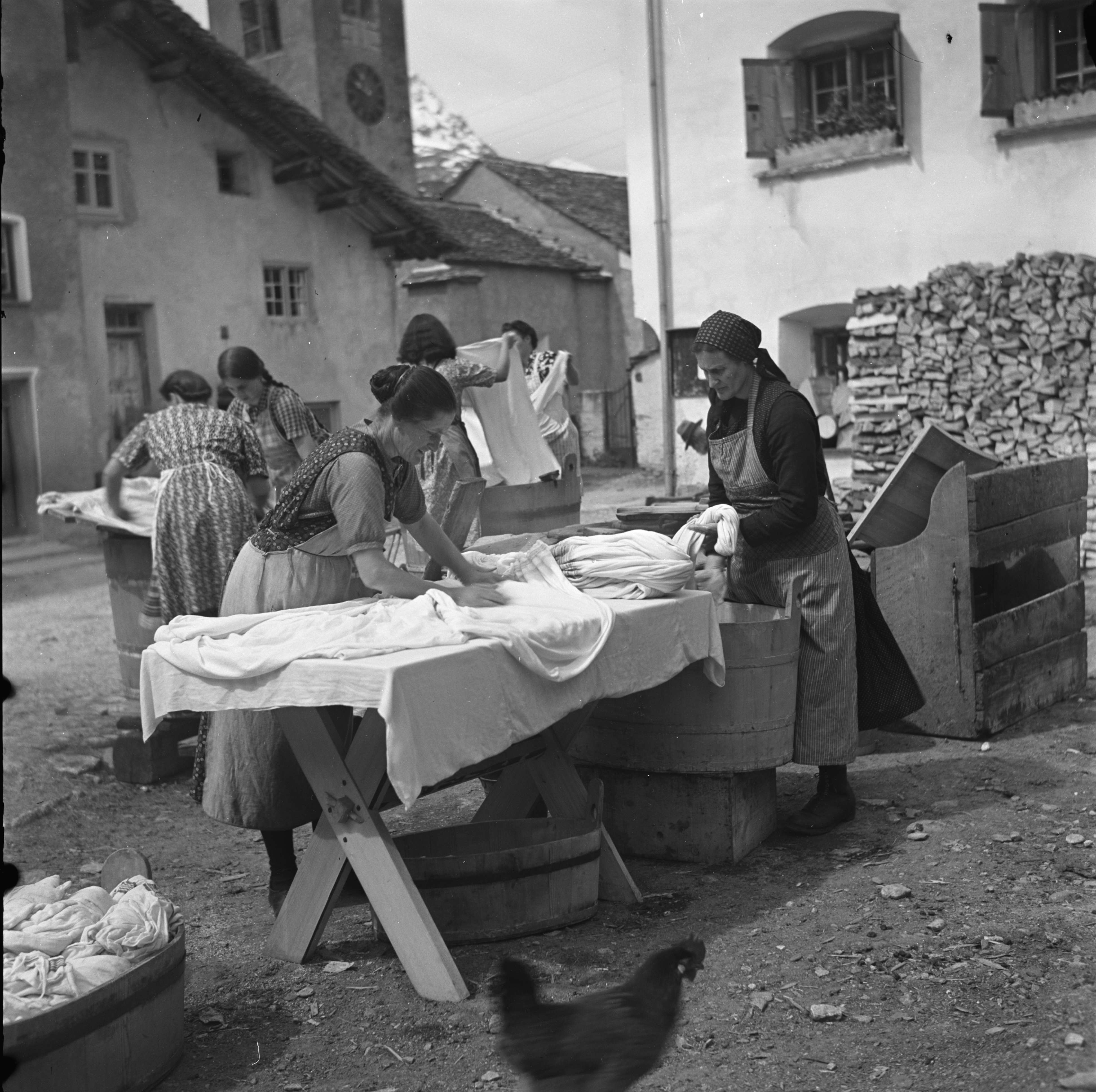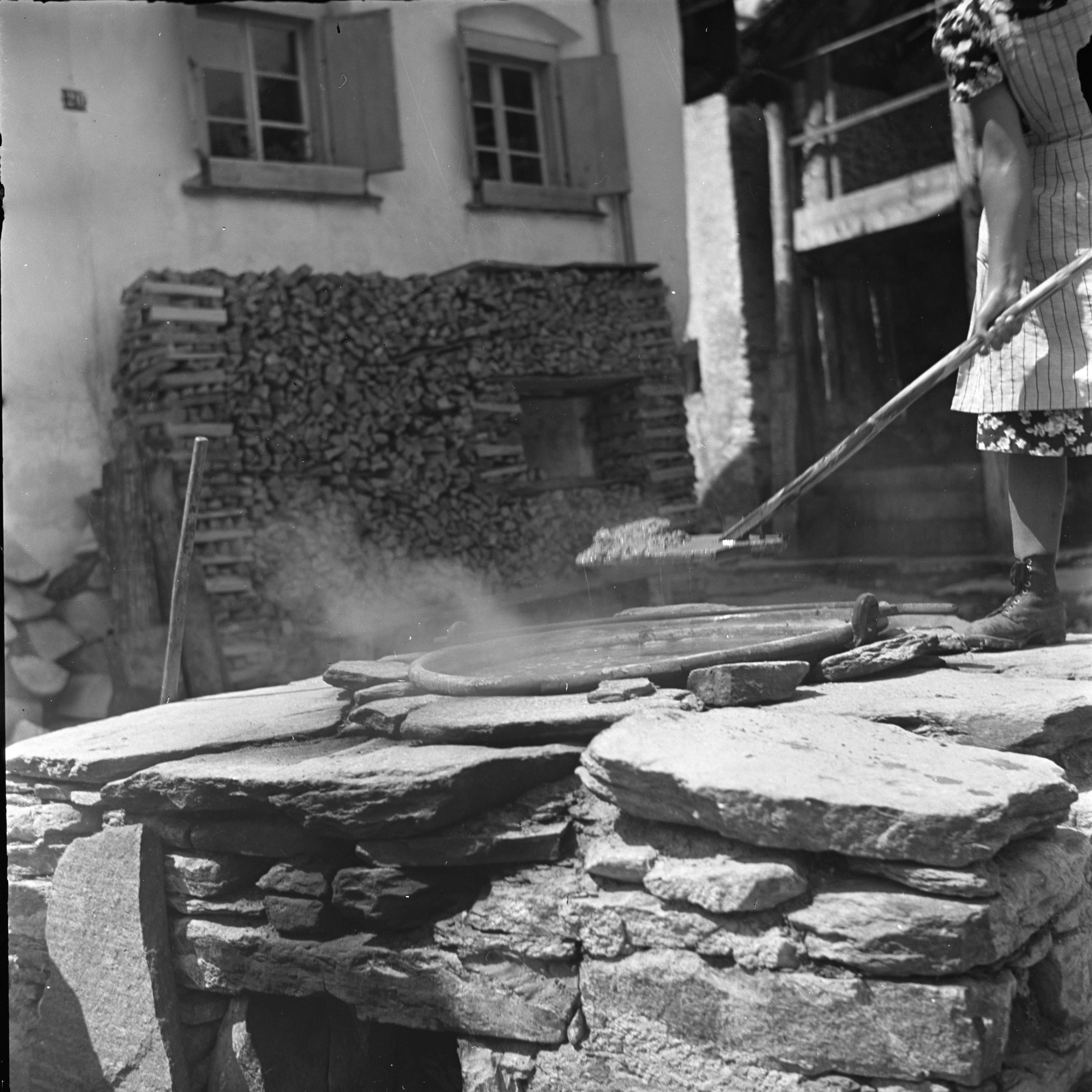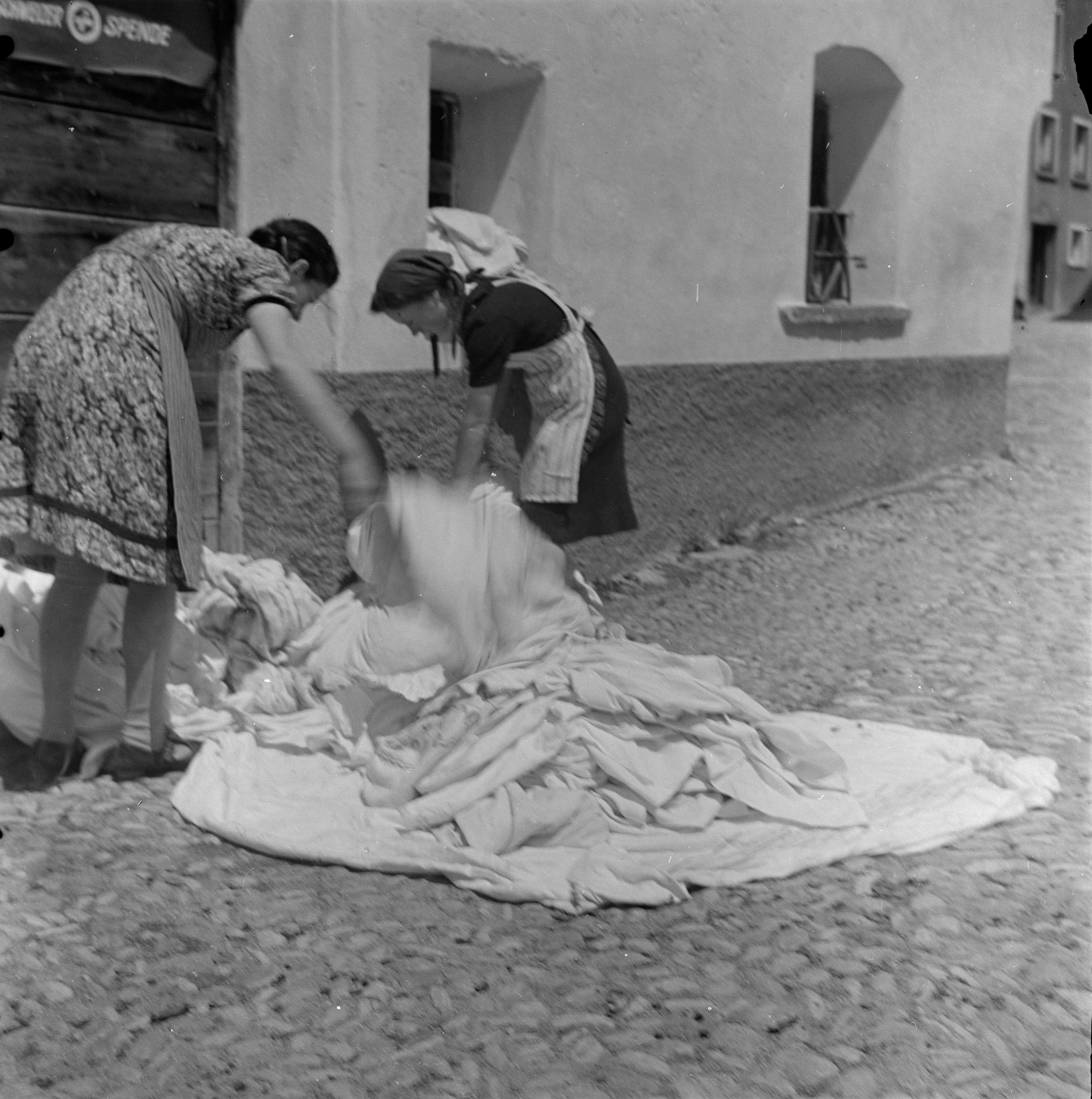 [Ein Mann hebt die gebrühten Blacken aus dem Kessel]