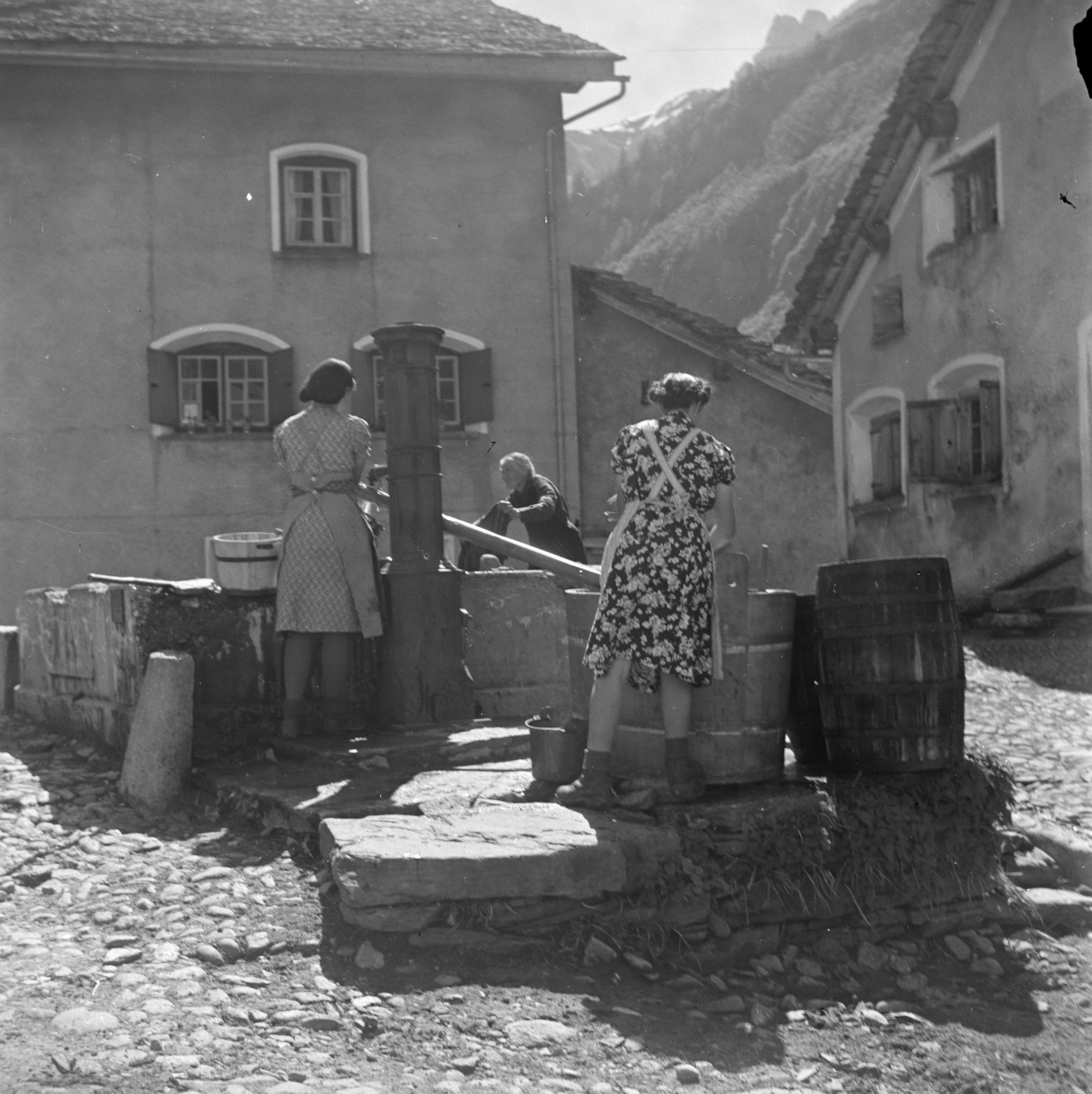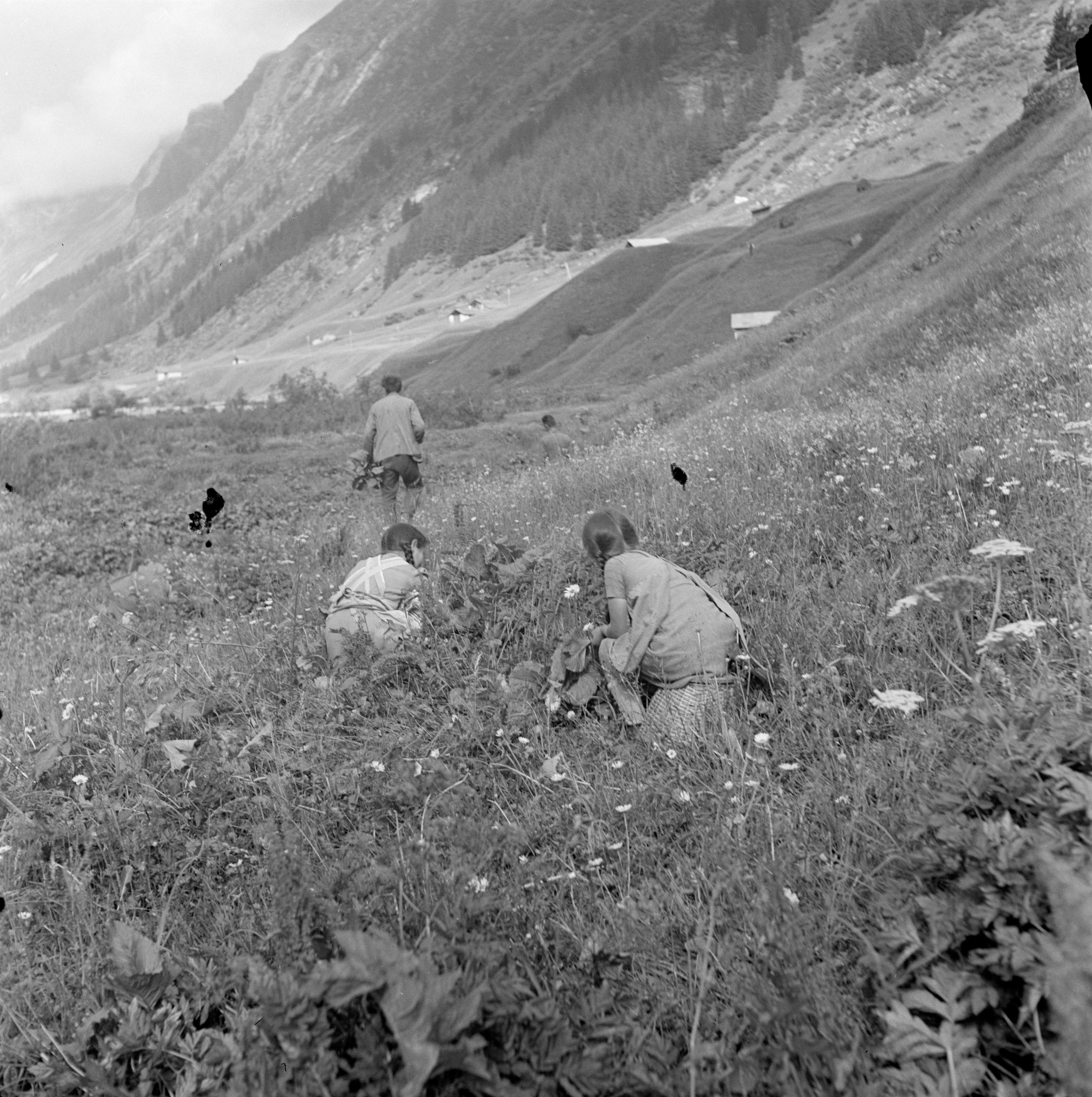 [Drei Kinder und ein Mann bei der Blackenernte]