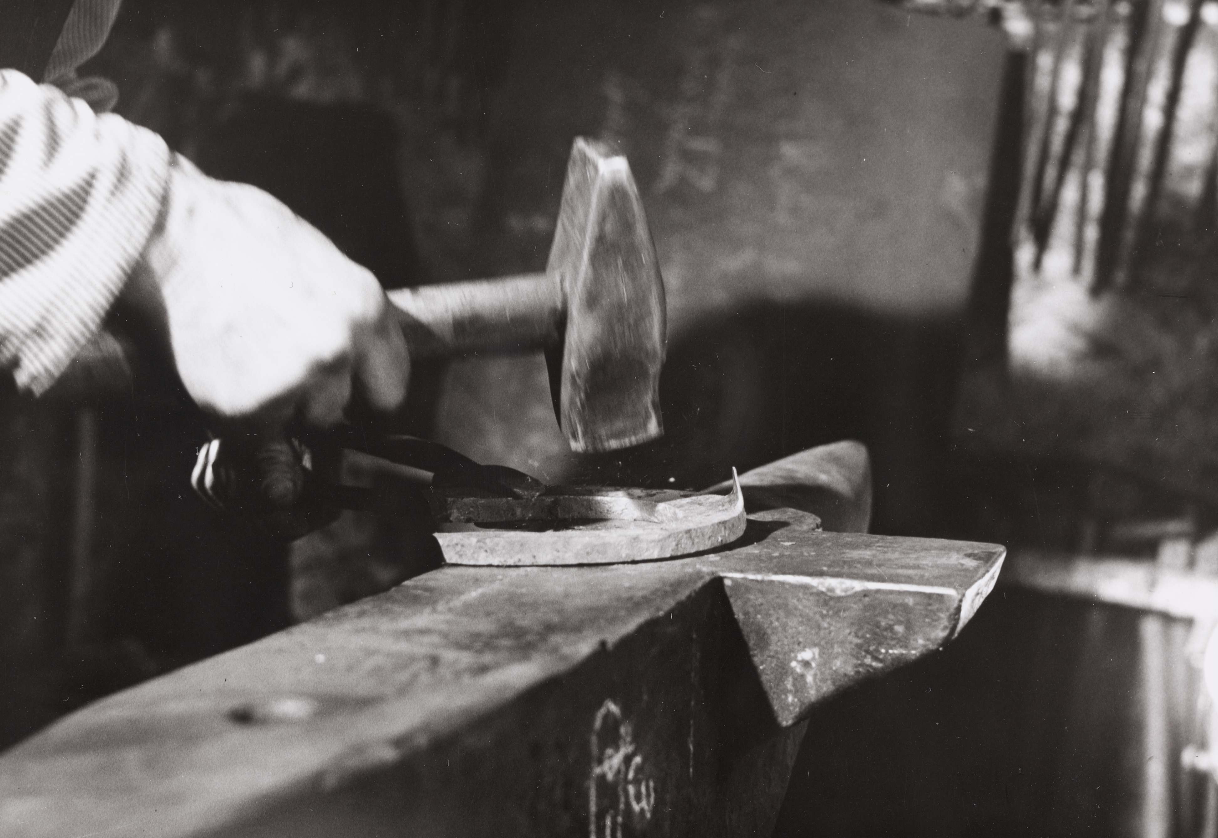 SGV_01P_0128411. Jetzt bearbeitet Giger das Eisen alleine am Ambosshorn.