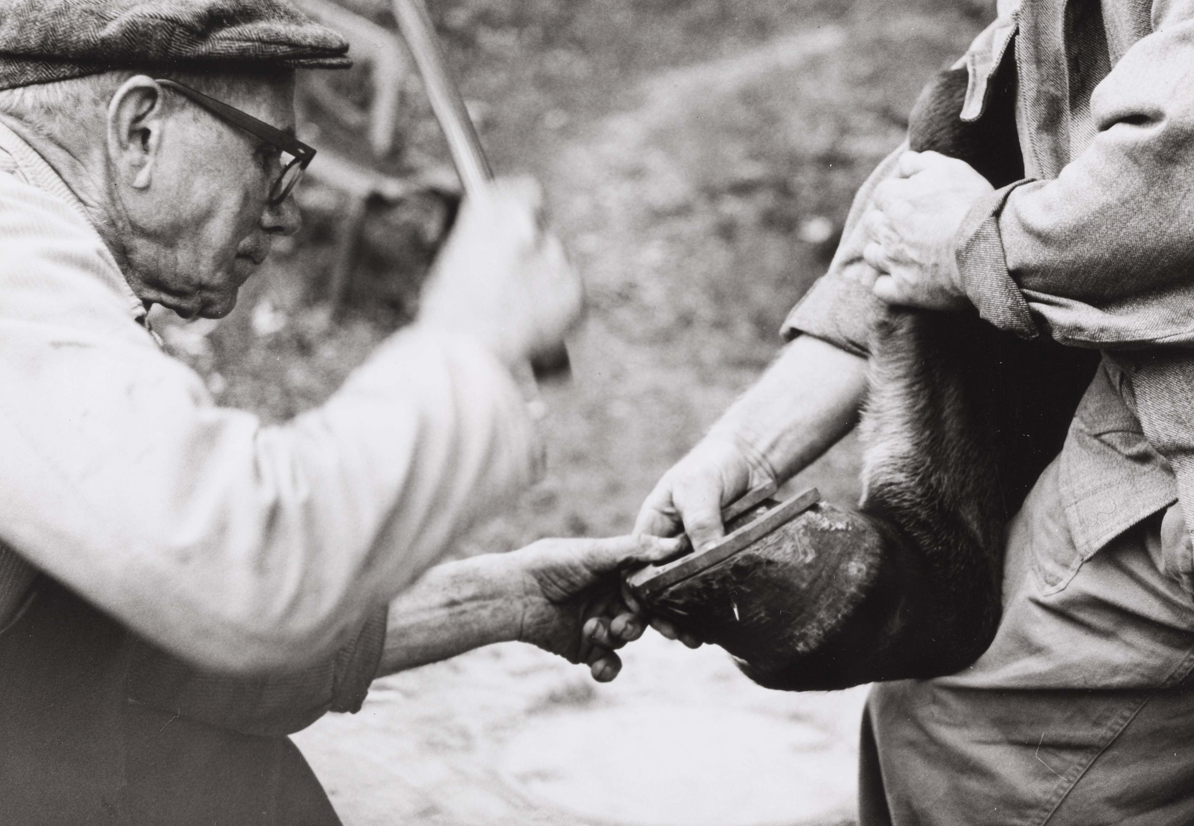 SGV_01P_0129930. Annageln des Hufes mit dem 'Bschlaghammer'.