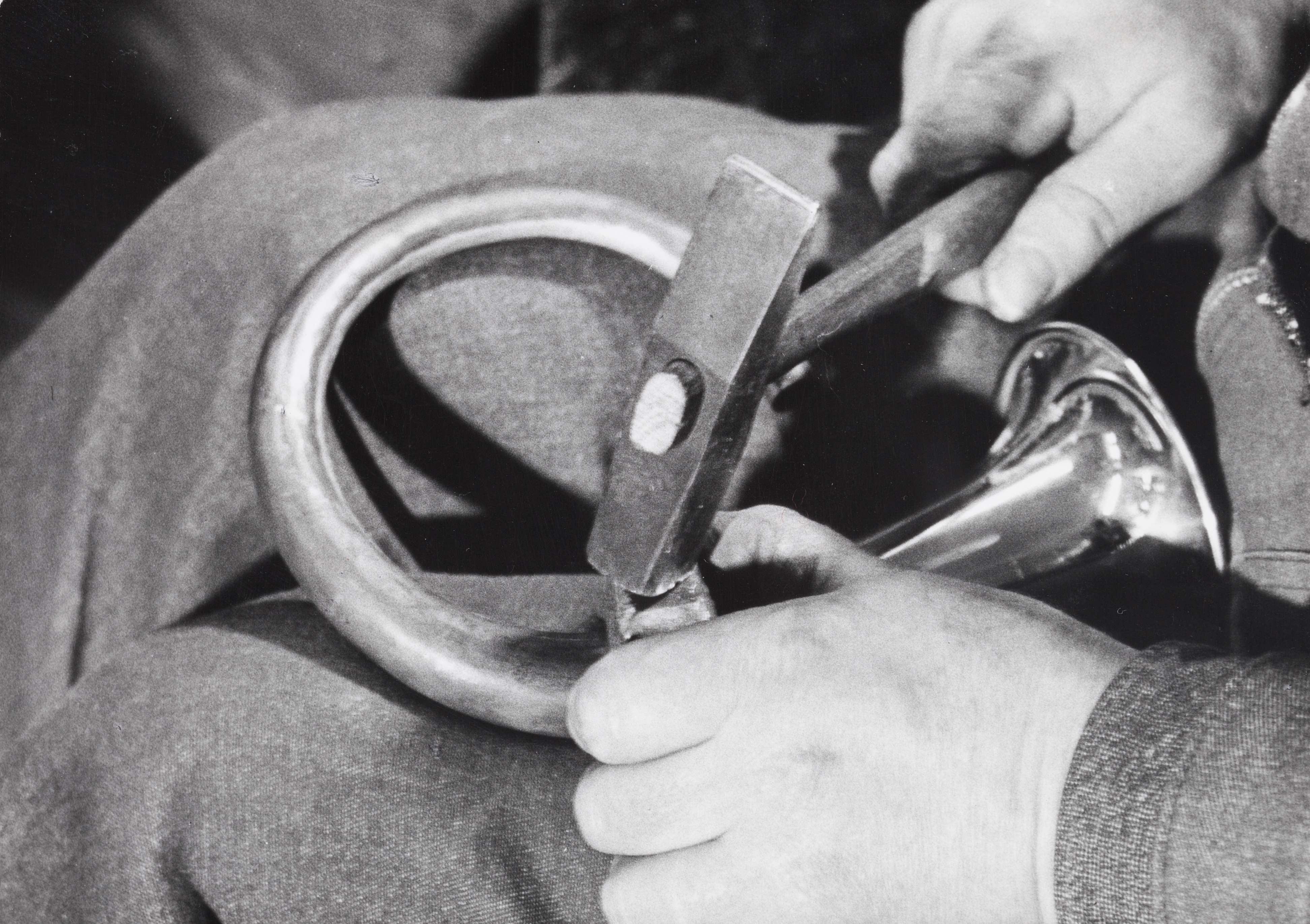 19. u. 20. Austreiben des Schallbechers auf dem Dorn, einem Ambosshorn.