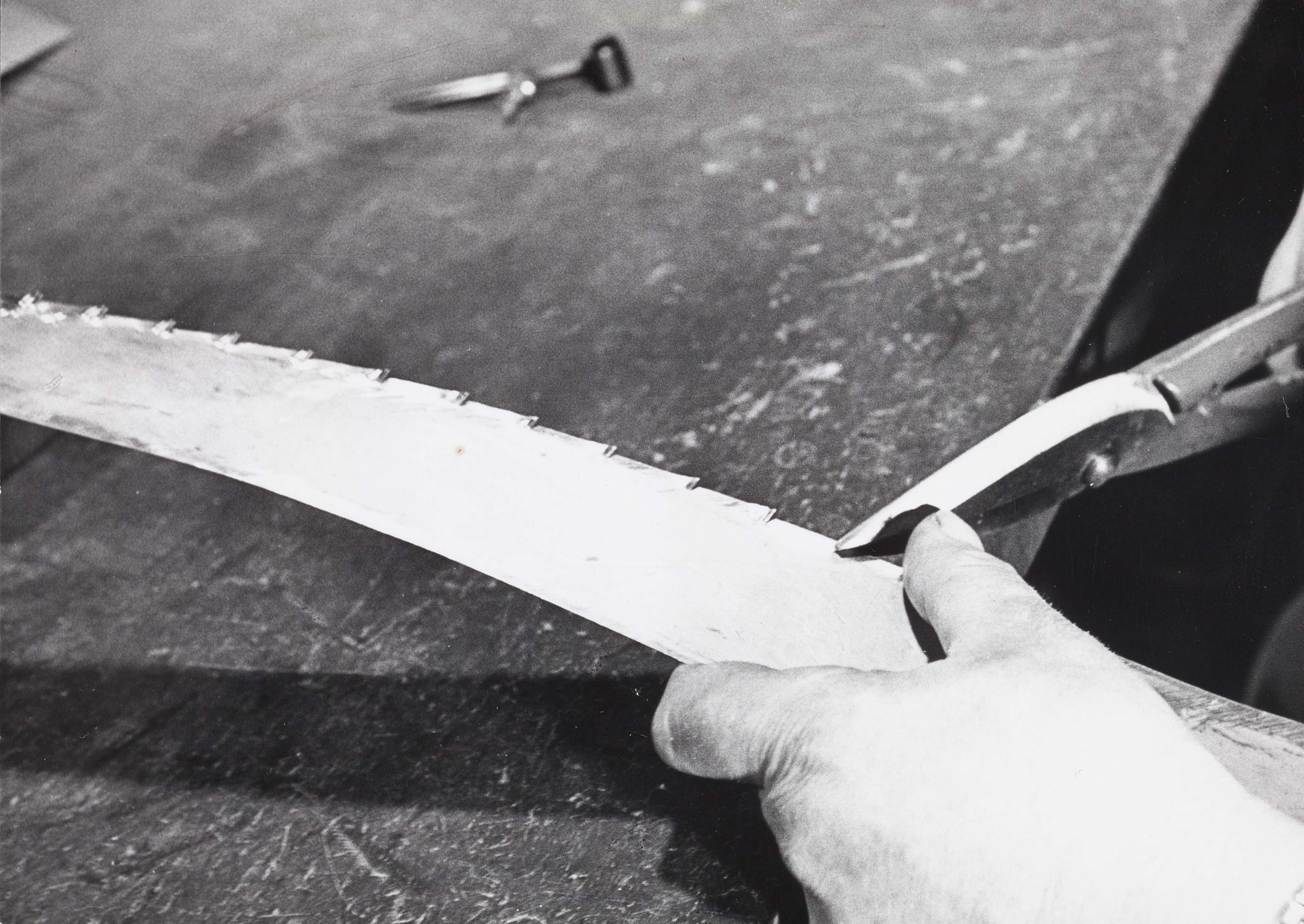 11. Falzen der nicht gezahnten Kante mit dem Handreibeisen.