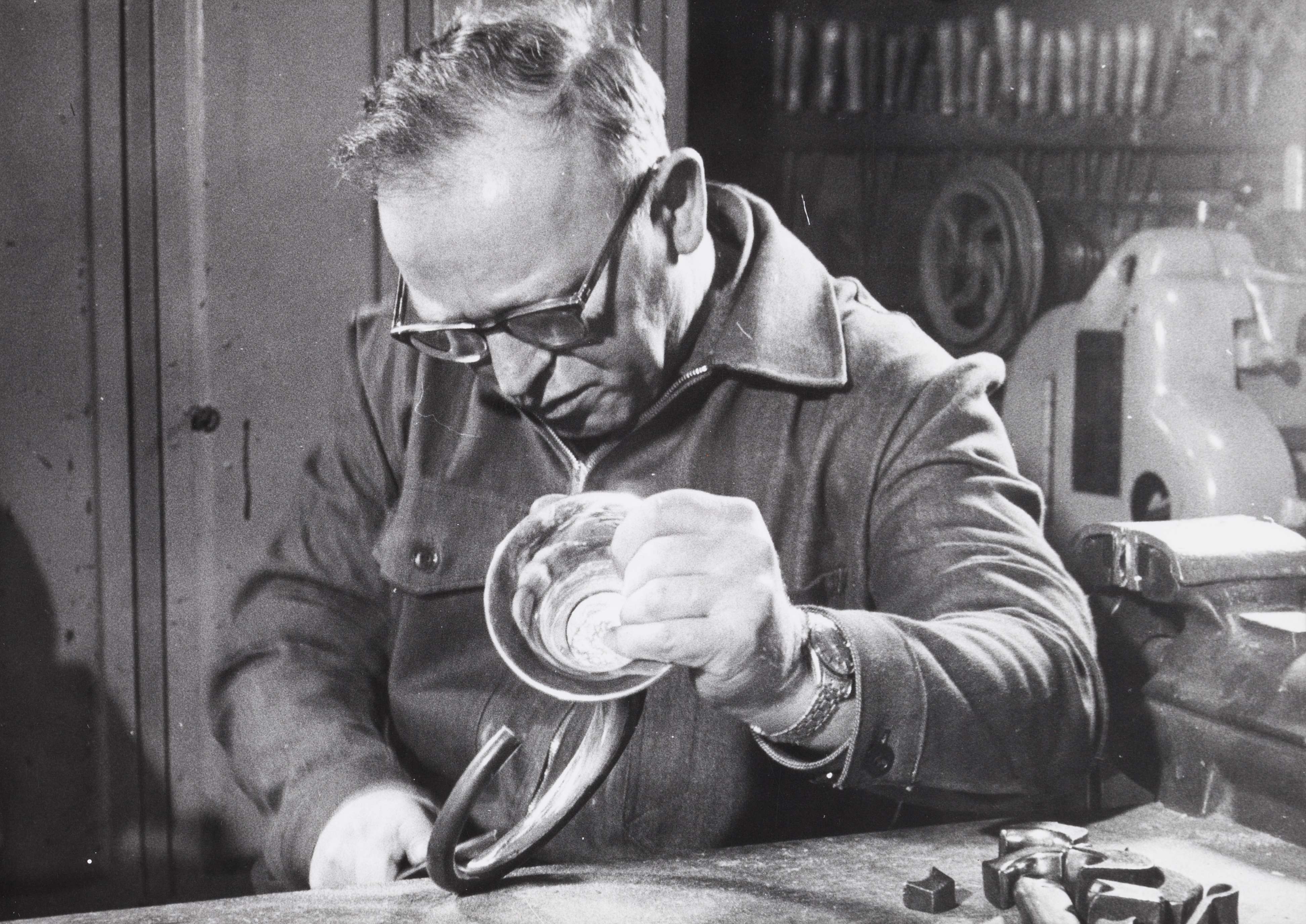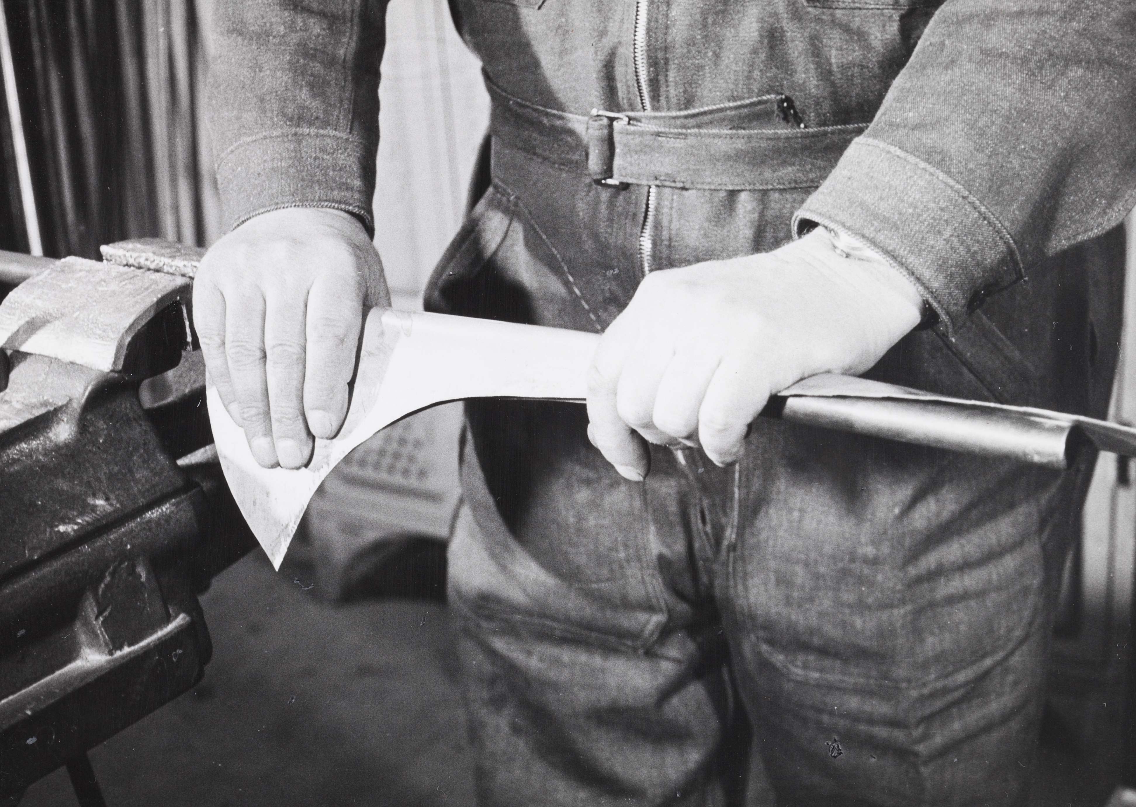26. Egger schleift das Schallstück mit vielfältigen Feilen.