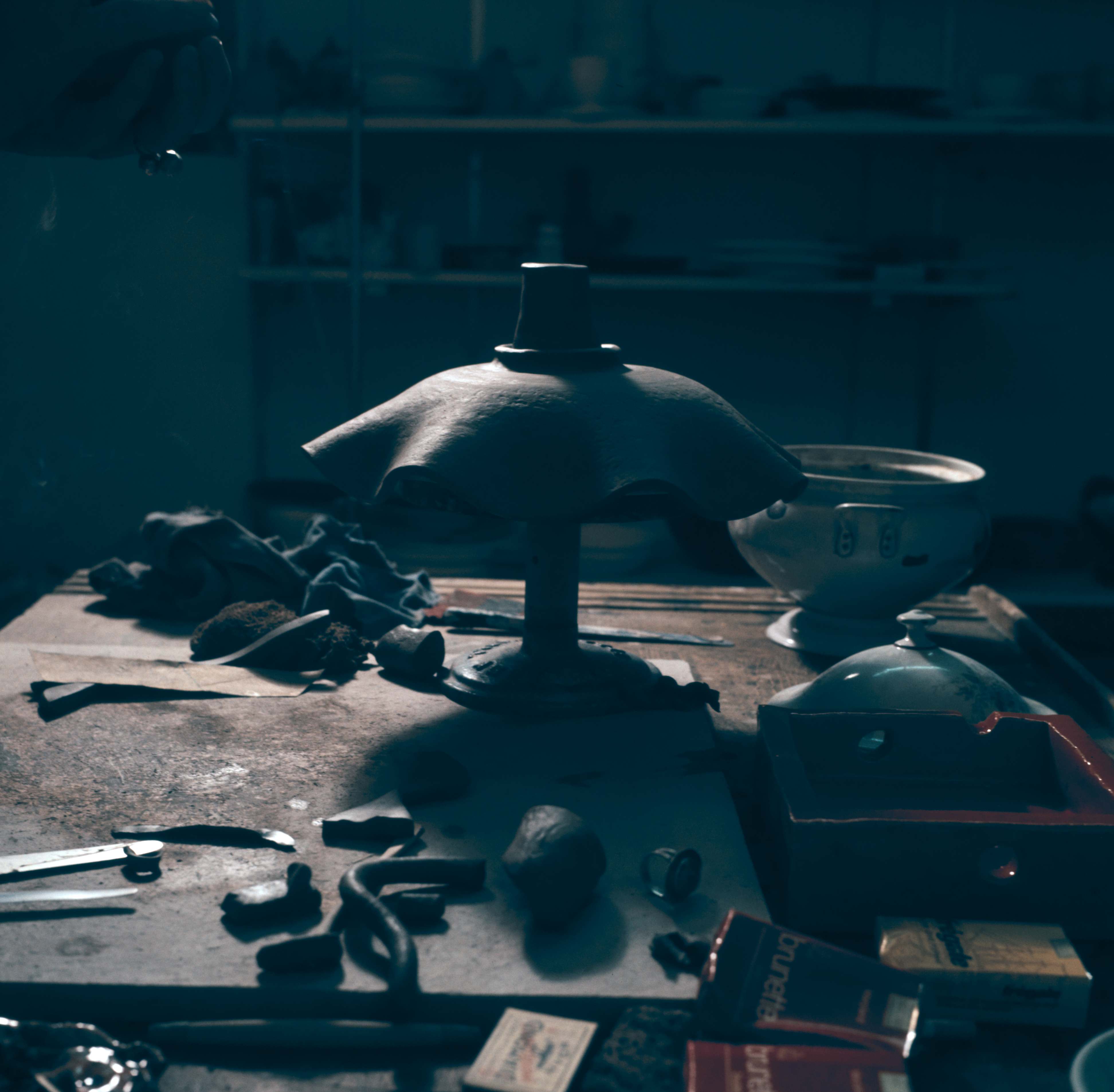 [Arbeitstisch der Töpferin Susa Messerli]