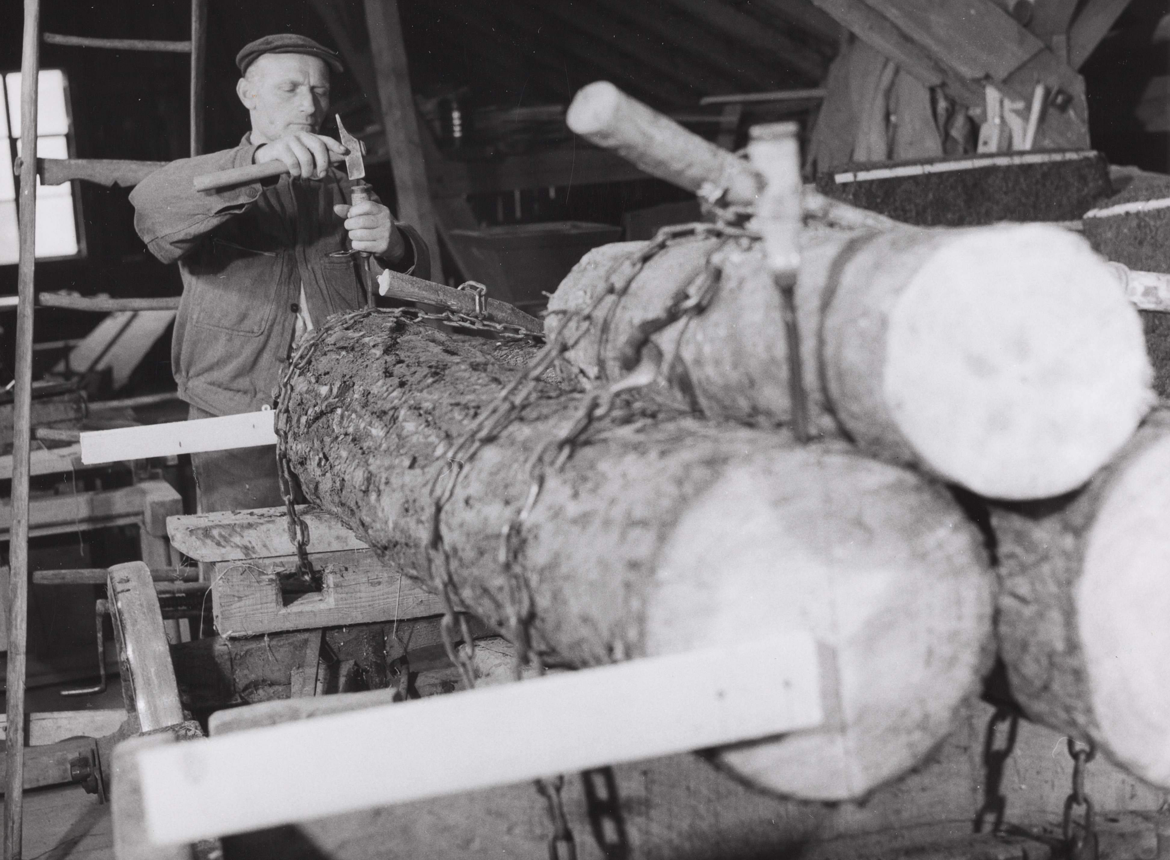 27. Konisches Zuspitzen des Tüchels (mit Axt)