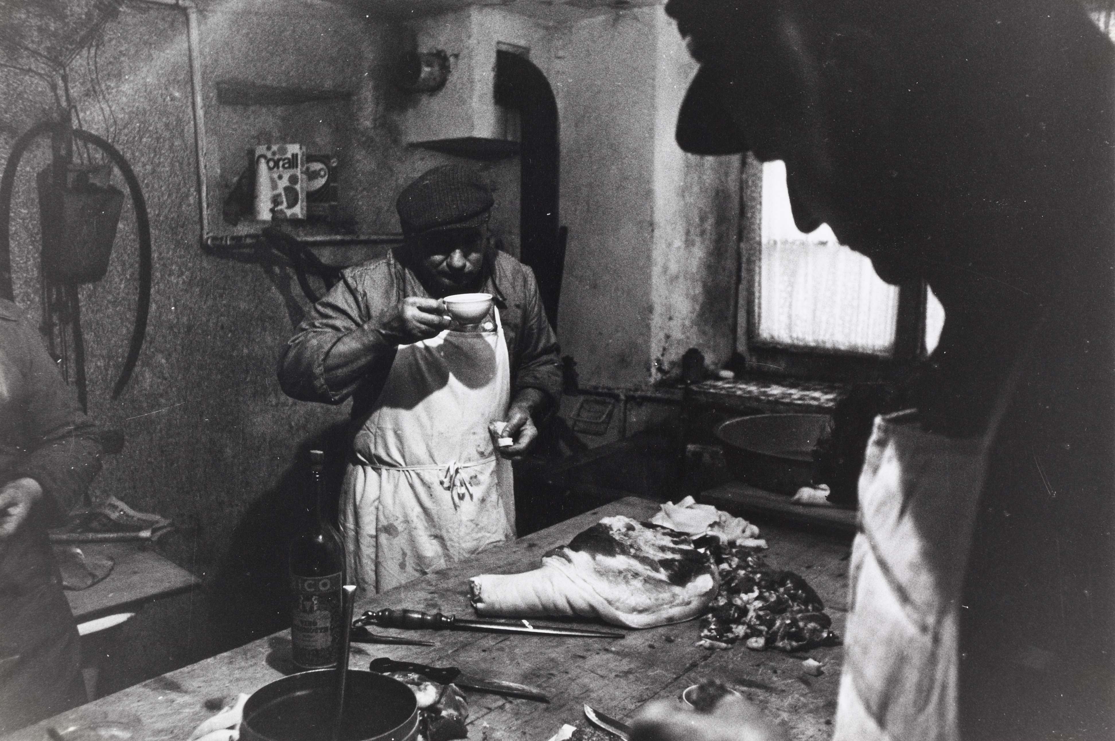 1. Le boucher ambulant est cantonnier ou paysan en été, d'octobre à milieu mars, il va de ferme en ferme tuer le cochon, le dépecer, le mettre en saucisses.