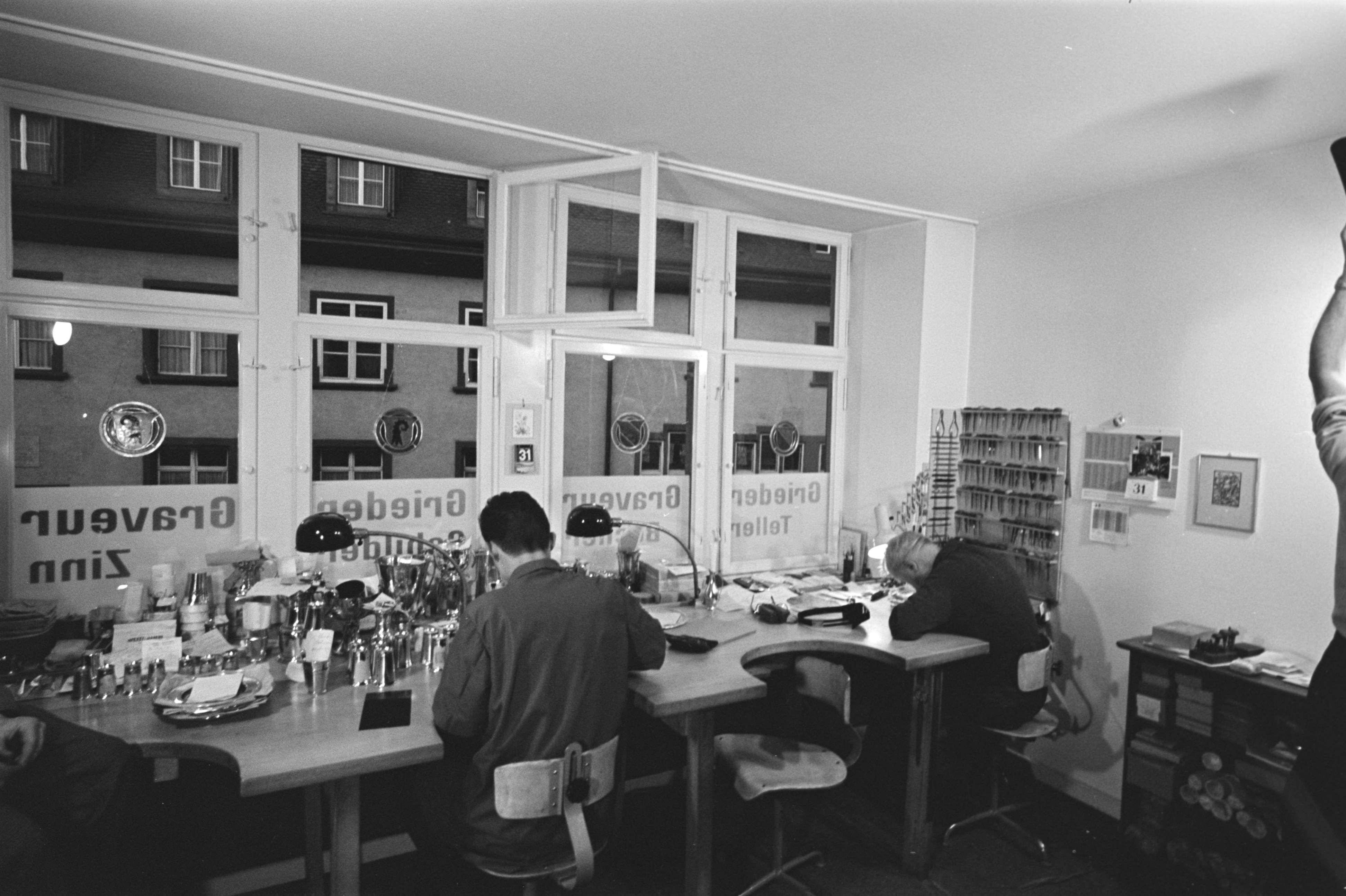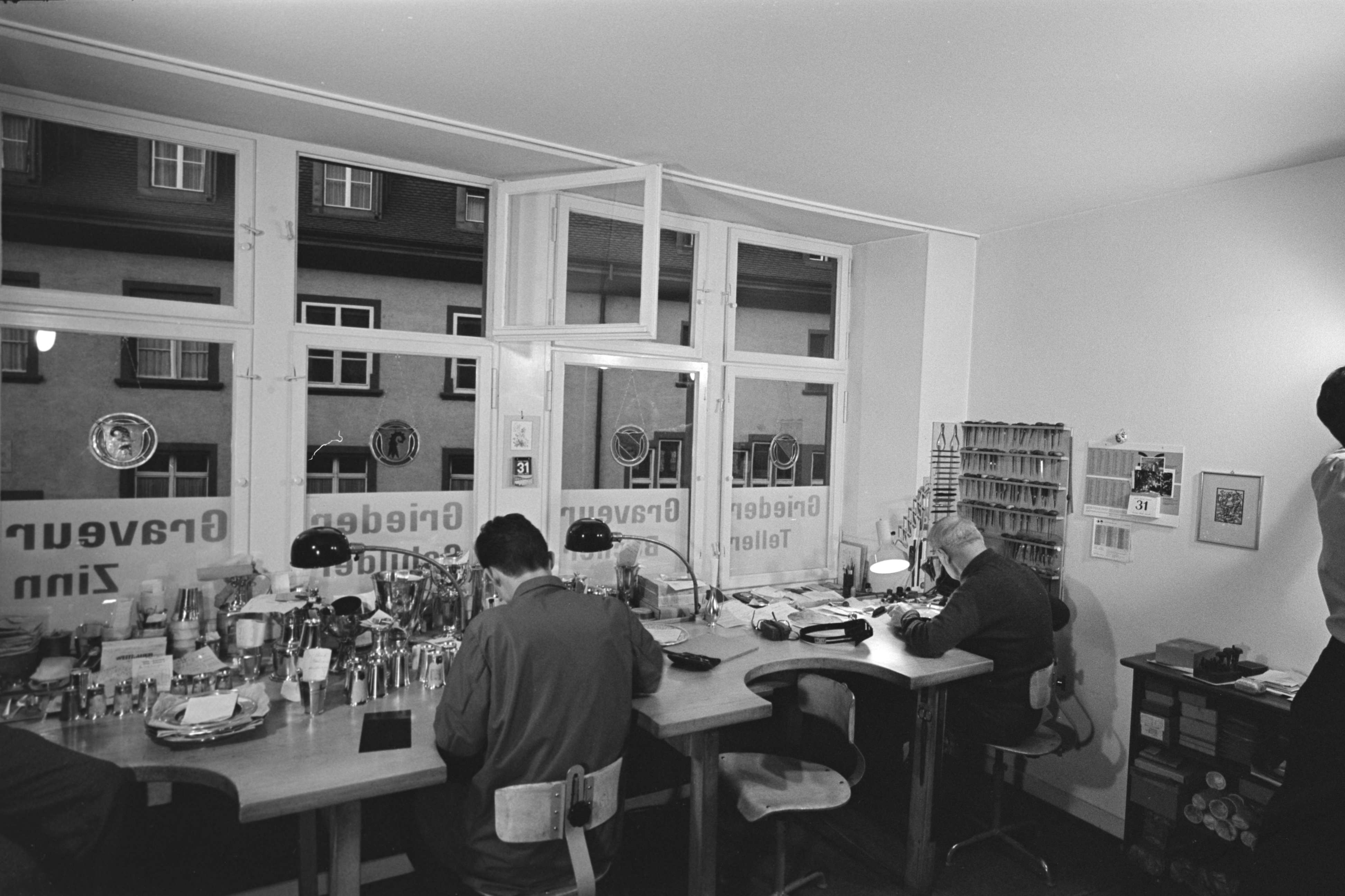 [Zinngraveure bei der Arbeit]