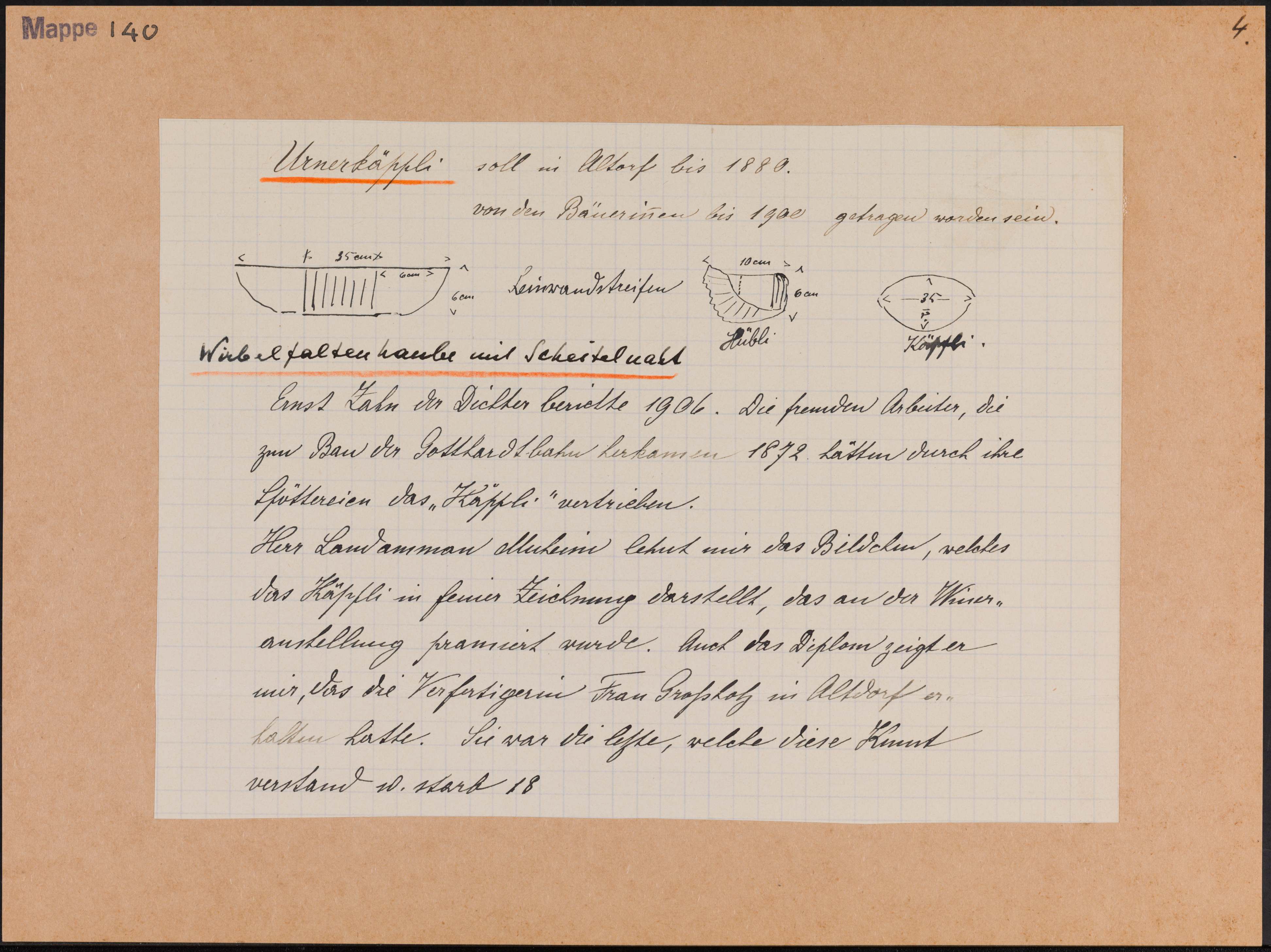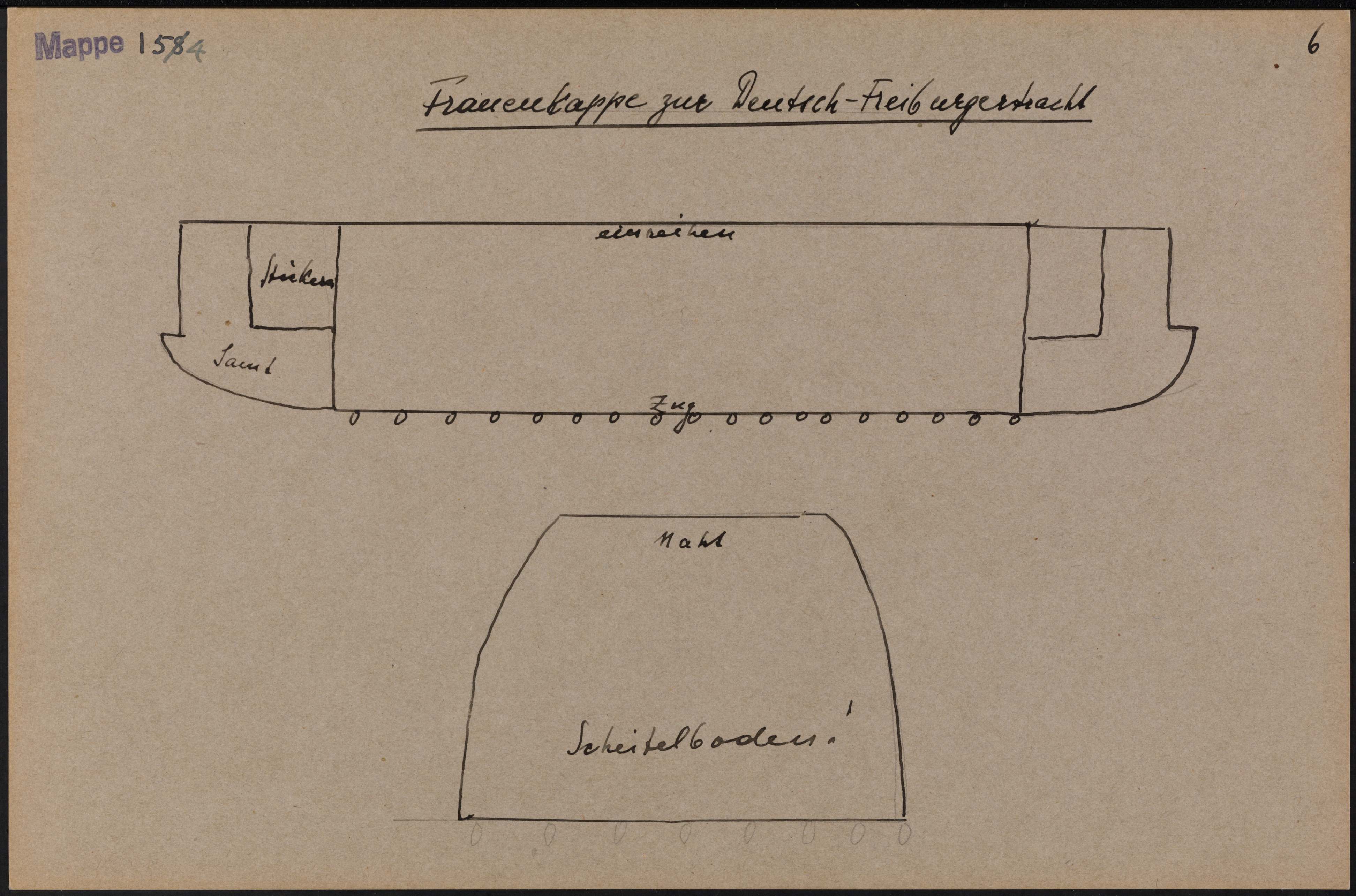 Schnittübersicht: Kappe d. deutsch Freiburgertracht mit Scheitelboden