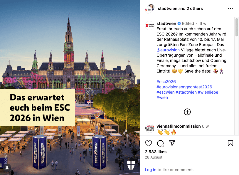 Es ist, nach 1967 und 2015, der dritte ESC in Österreich – und der dritte, der in Wien stattfindet. Schon direkt nach seinem Gewinn hatte Sieger JJ den Wunsch verkündet, dass der Wettbewerb in seiner Heimatstadt Wien stattfinden solle. Neben einigen nicht ganz ernstzunehmenden Bewerbungen, blieben lediglich Innsbruck und Wien in der finalen Auswahl um den Austragungsort. Als dann am frühen Morgen des 20. August die Entscheidung für Wien fiel, war ich ehrlich überrascht: Ich hätte einen höheren zweistelligen Betrag darauf gewettet, dass der ESC dieses Mal einfach nicht erneut nach Wien gehen kann. Da habe ich wohl mit einem zu helvetischen Blick auf Österreich geschaut: Der ESC fand ebenfalls drei Mal in der Schweiz statt, immer aber in einer anderen Stadt. Dass eine einzelne Stadt so eindeutig für die ganze Welt als kulturelles Zentrum des Landes sichtbar wird, ist für ein schweizerisches Verständnis föderativer Balance kaum nachvollziehbar. Unbedeutendes Land und Weltstadt eben... hätte ich den Leitsatz beherzigt, hätte ich die Wette gewonnen.